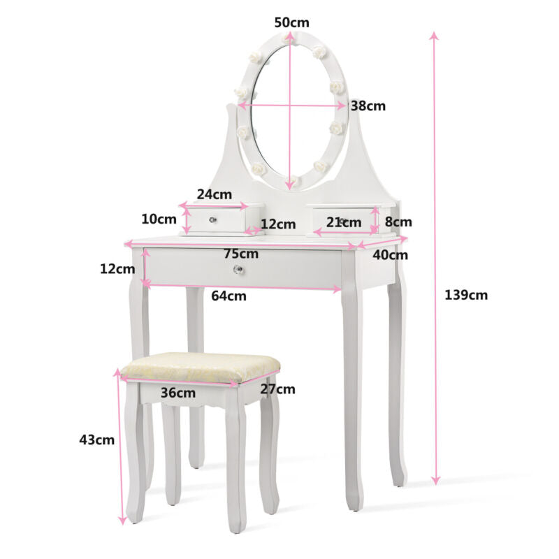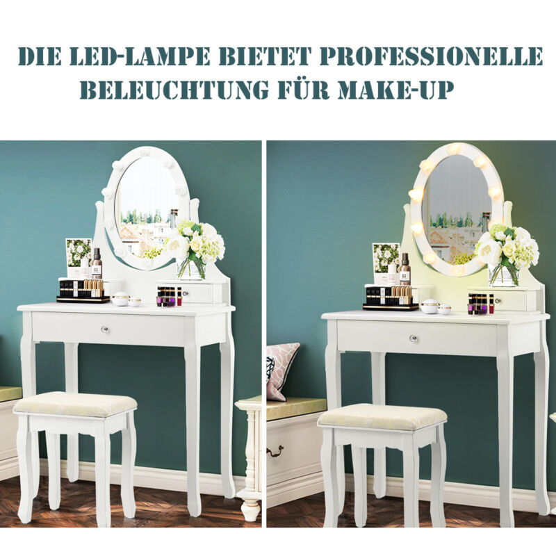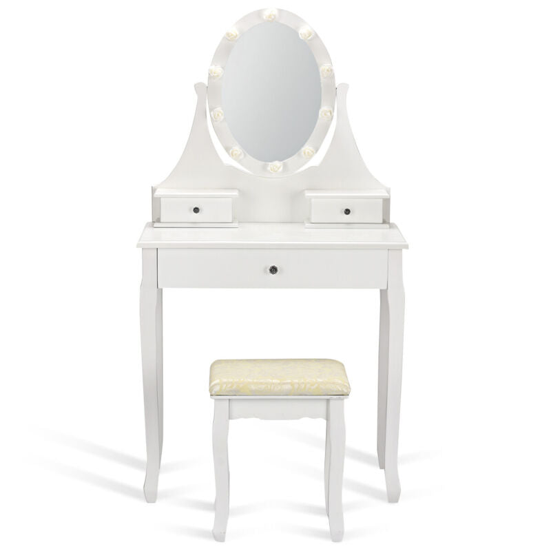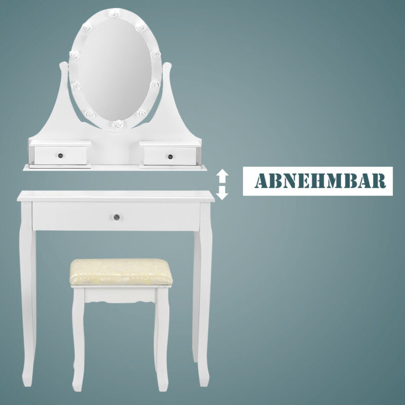 Vanity Dressing Table Set Makeup Desk W/Detachable Tabletop &LED Rotating Mirror