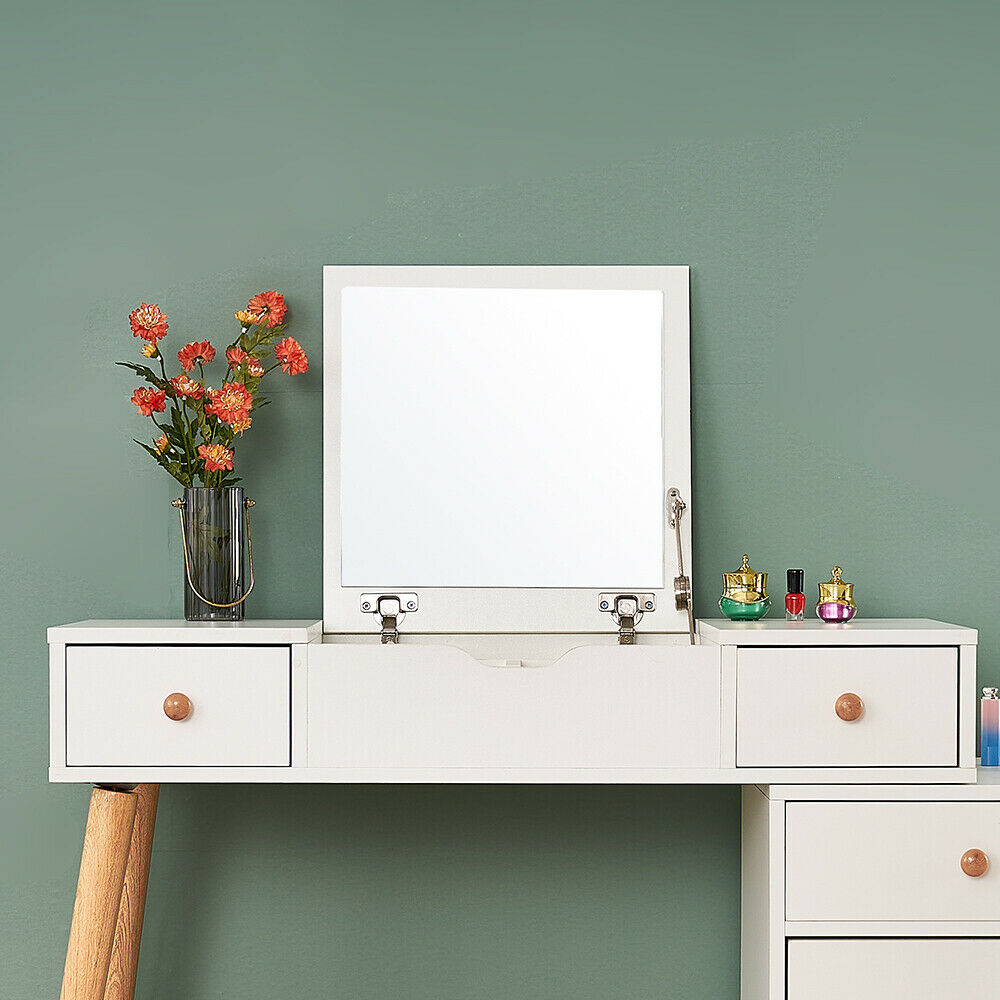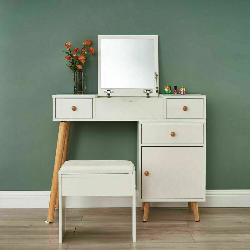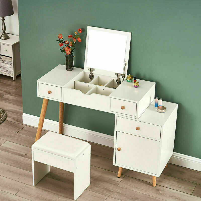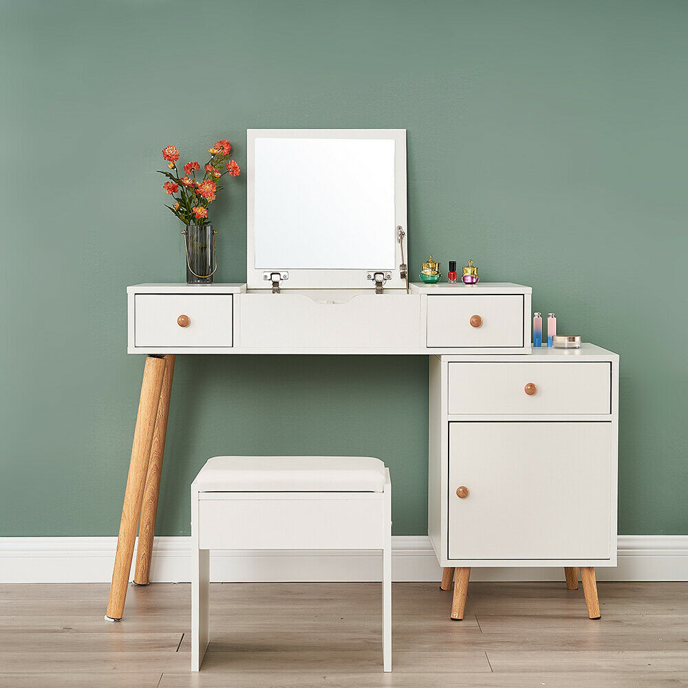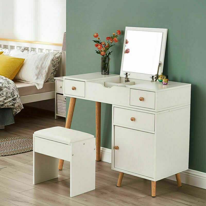 Vanity Flip-up Mirror Storage Dressing Table w/ 3 Drawers 1 Door Stool Set UK
