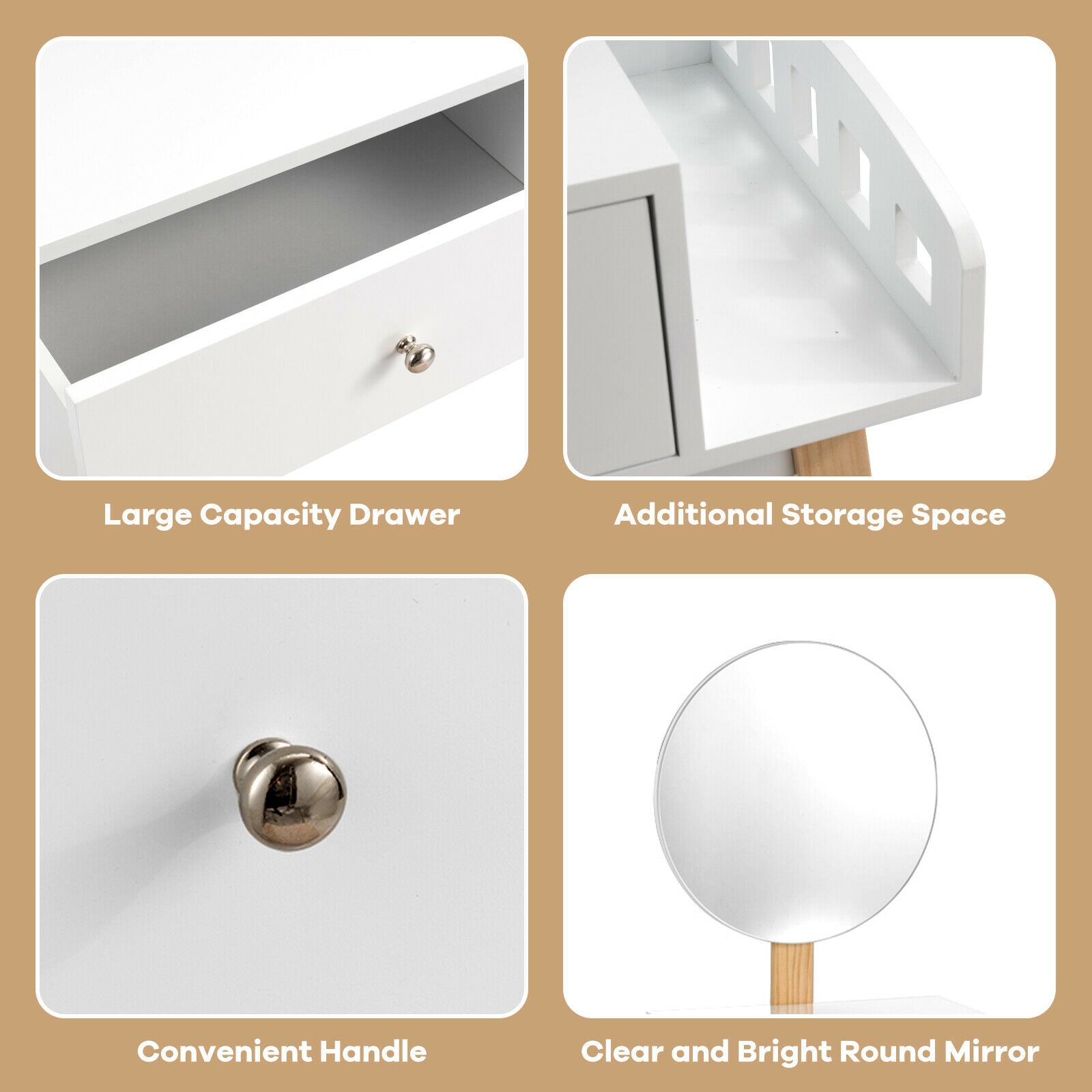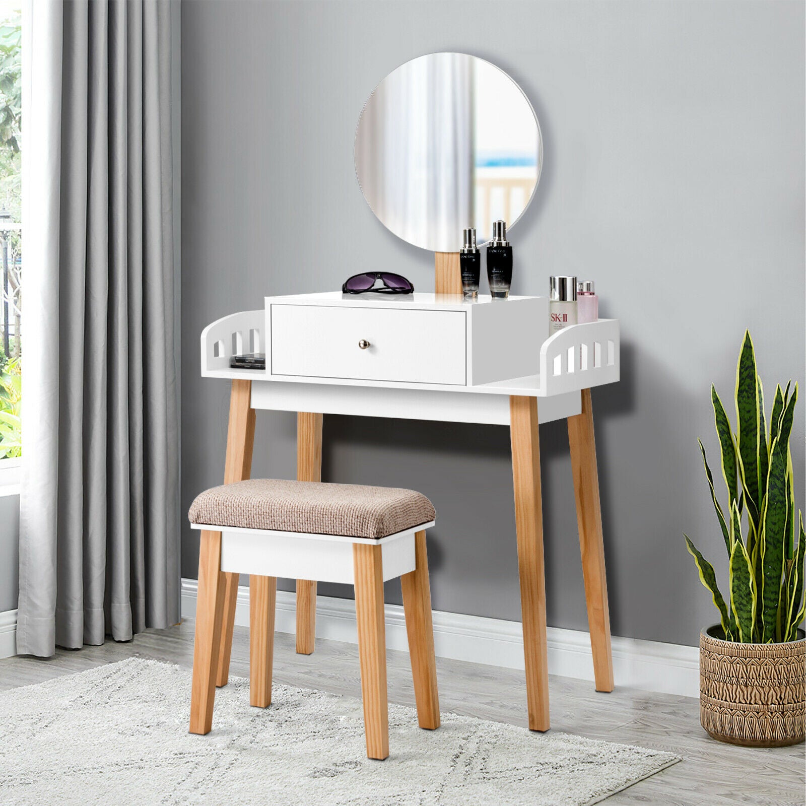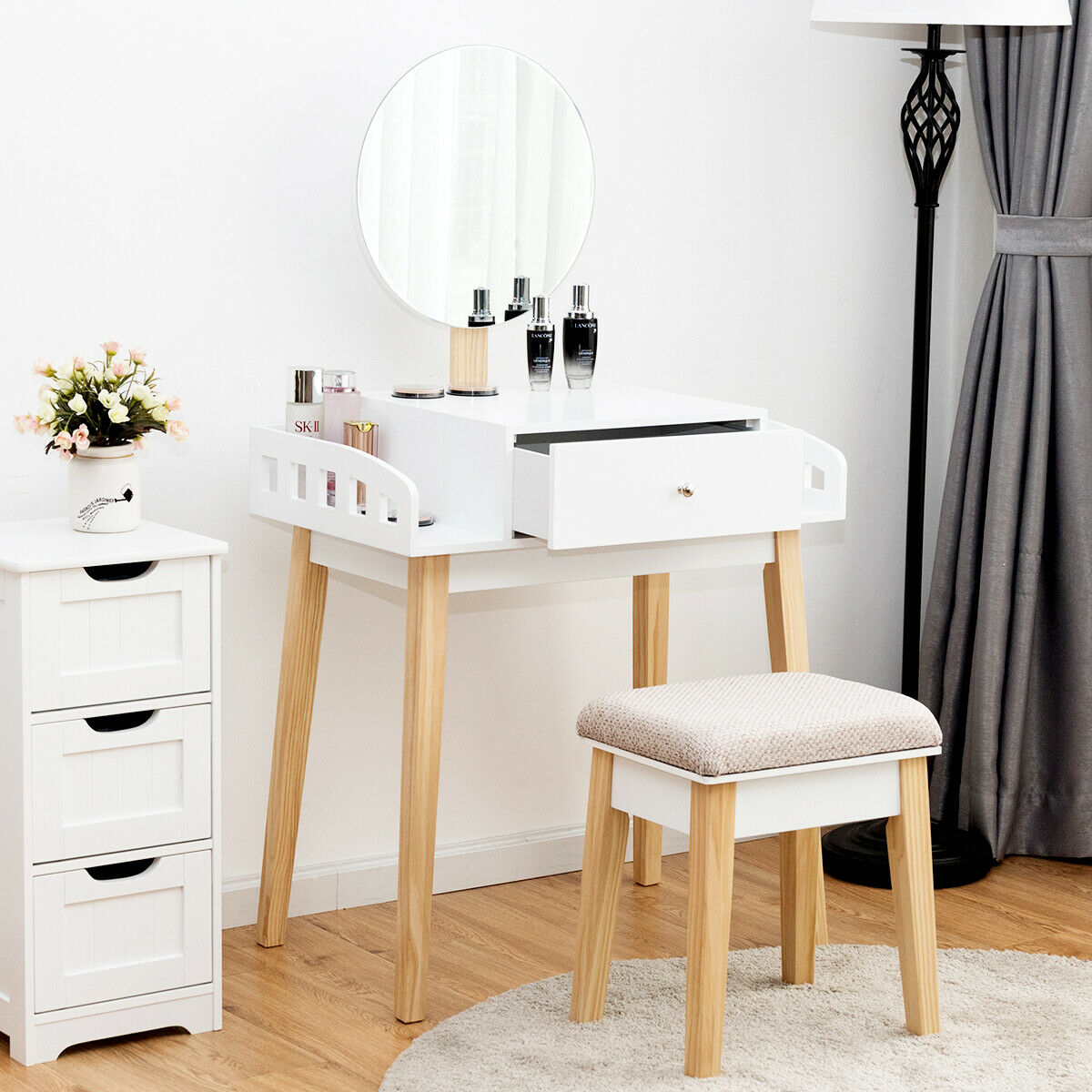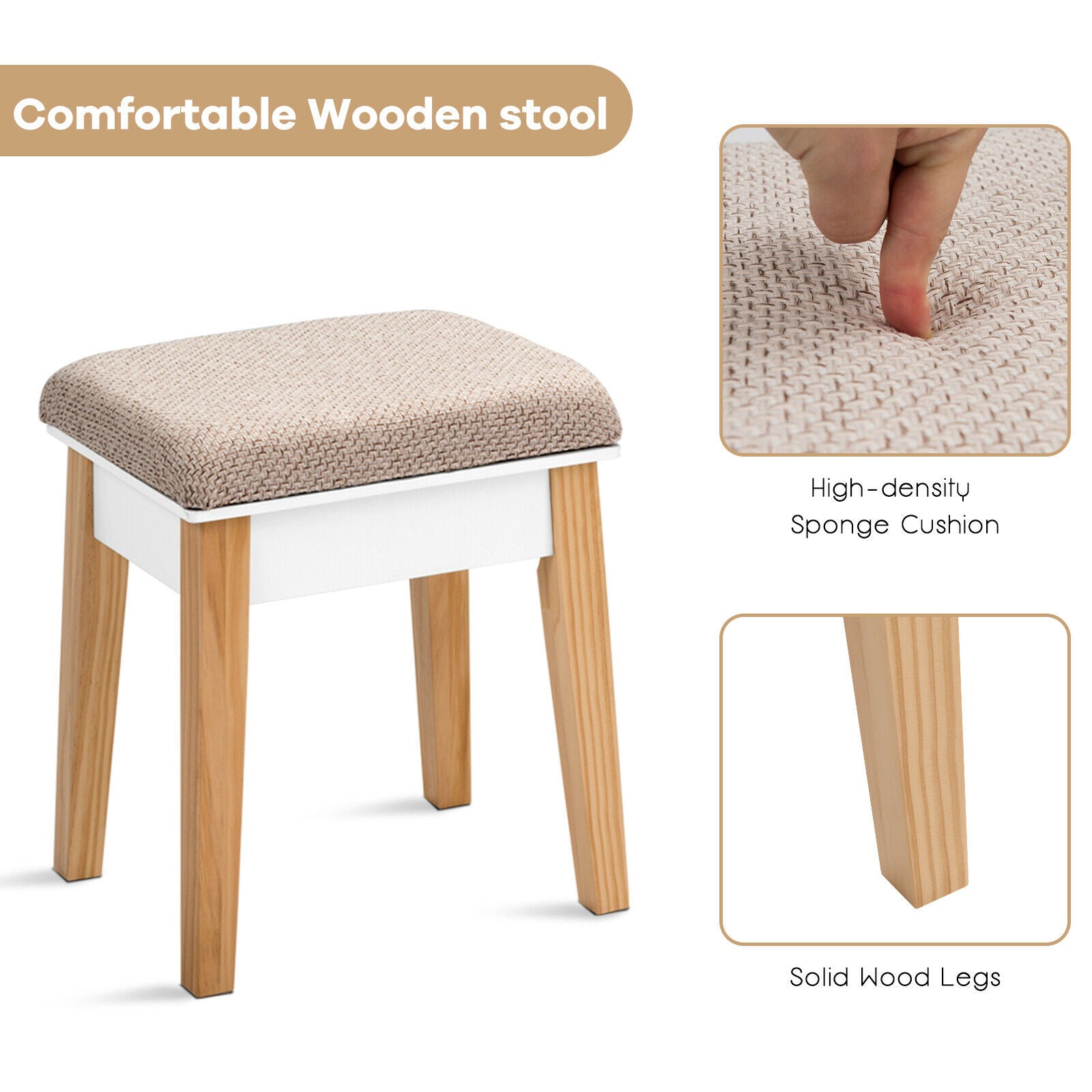 Vanity Makeup Dressing Table Wooden Cosmetic Table Stool Set W/Adjustable Mirror