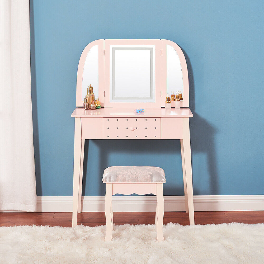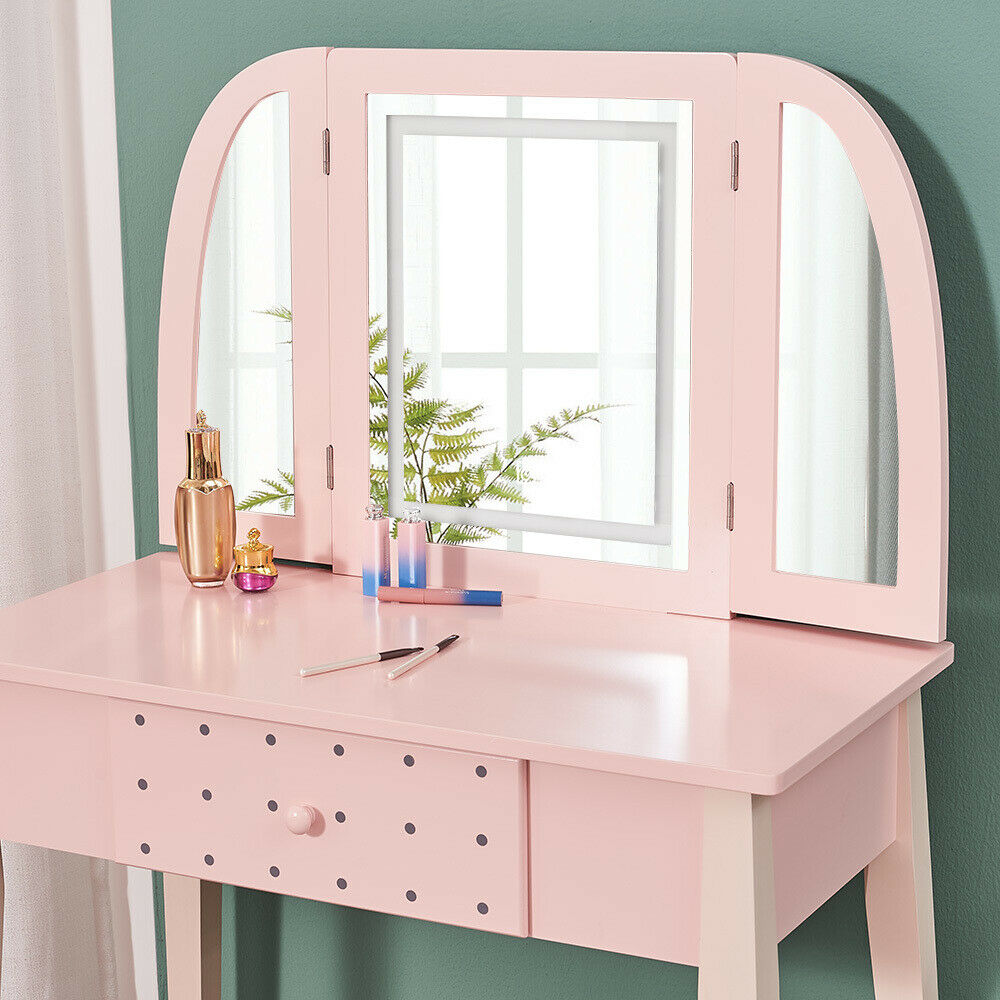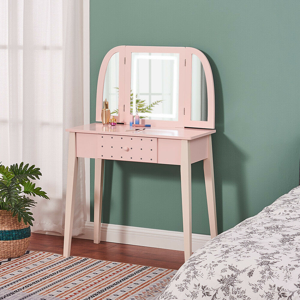 Vanity Makeup LED Mirror Dressing Table Stool Set Bedroom Makeup Desk W/Drawer