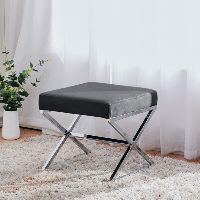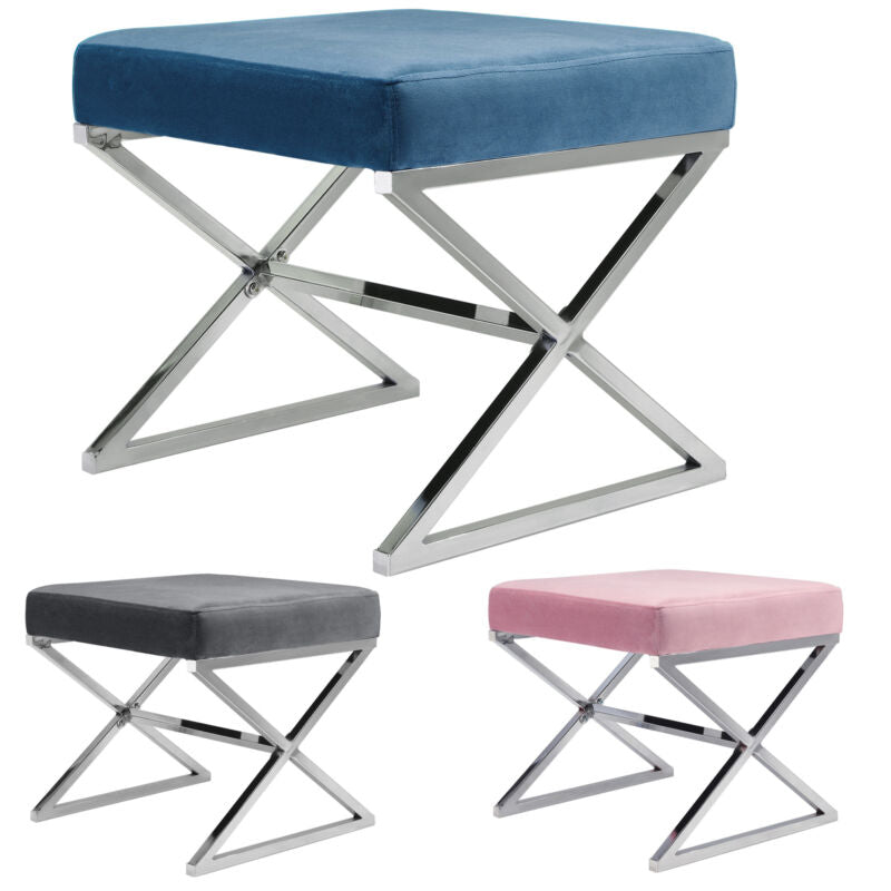 Vanity Stool Chair Velvet Padded Seat Chrome Leg Living Room Bedroom Side Chair