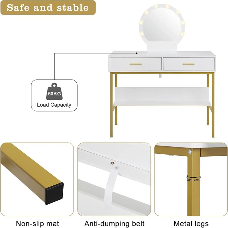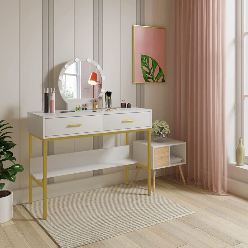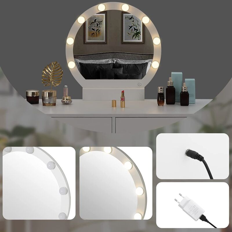 Vanity Table Dressing Table with 8 LED Bulbs 2 Drawers Modern Makeup Table