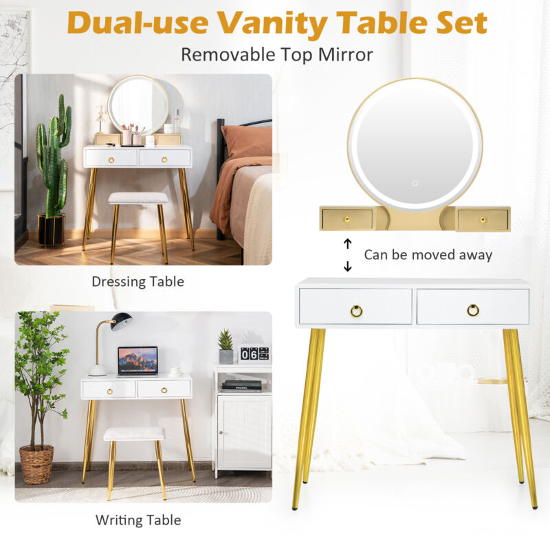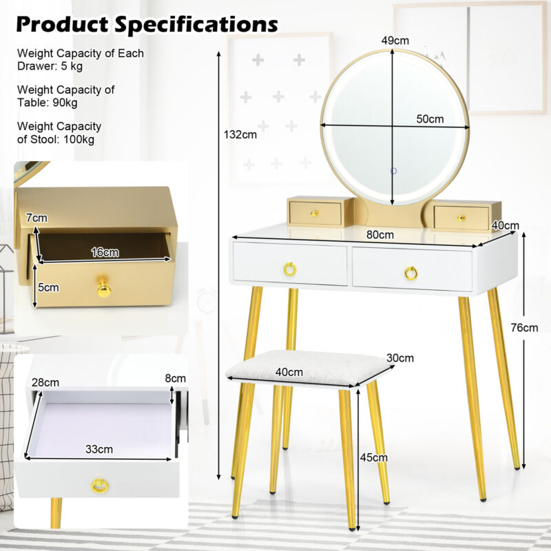 Vanity Table Set Large Makeup Dressing Desk & Stool Set with Lighted Mirror