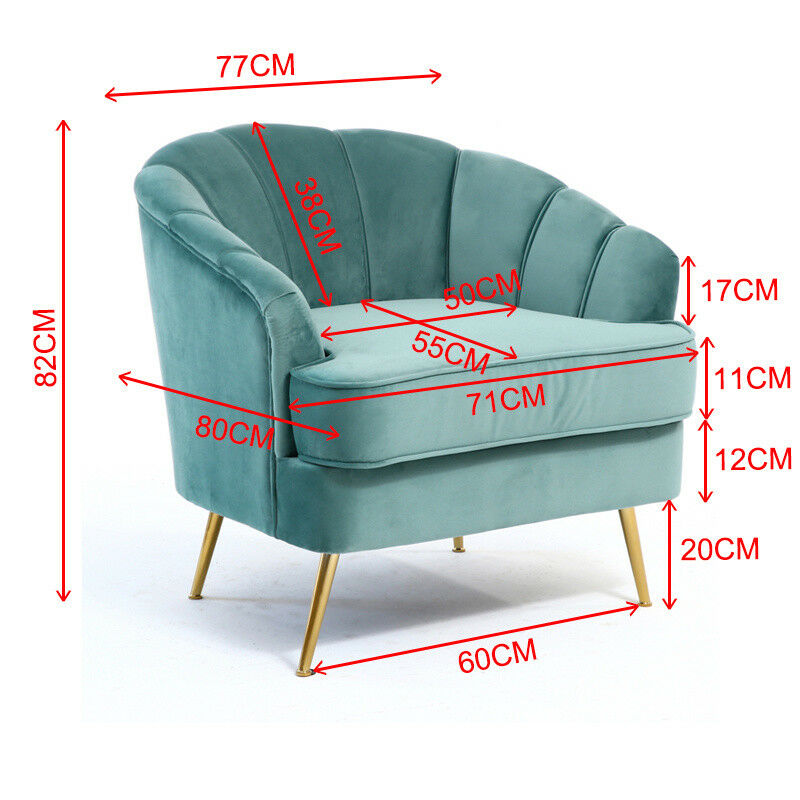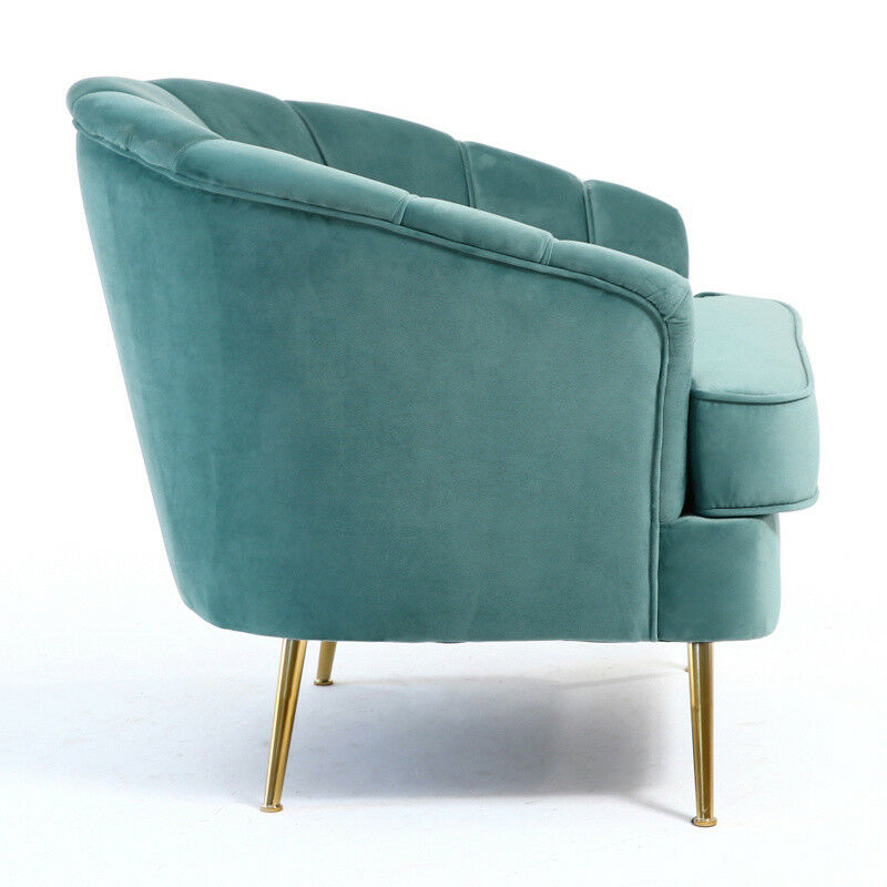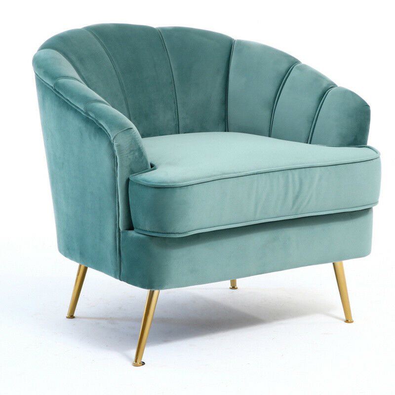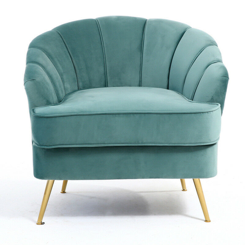 Velvet Armchair Shell Lotus Oyster Back Sofa Metal Gold Leg Chair Lounge Bedroom