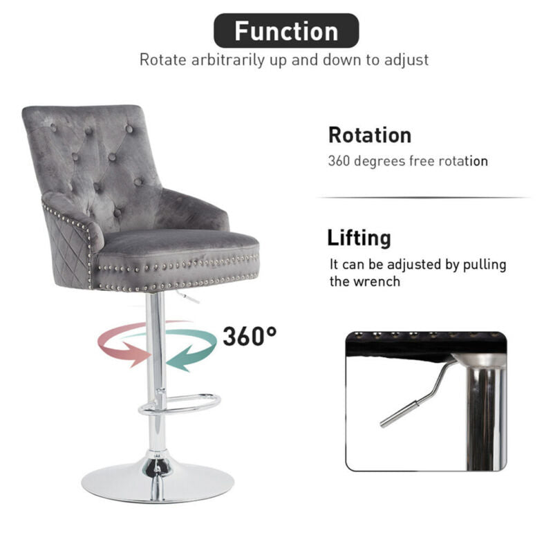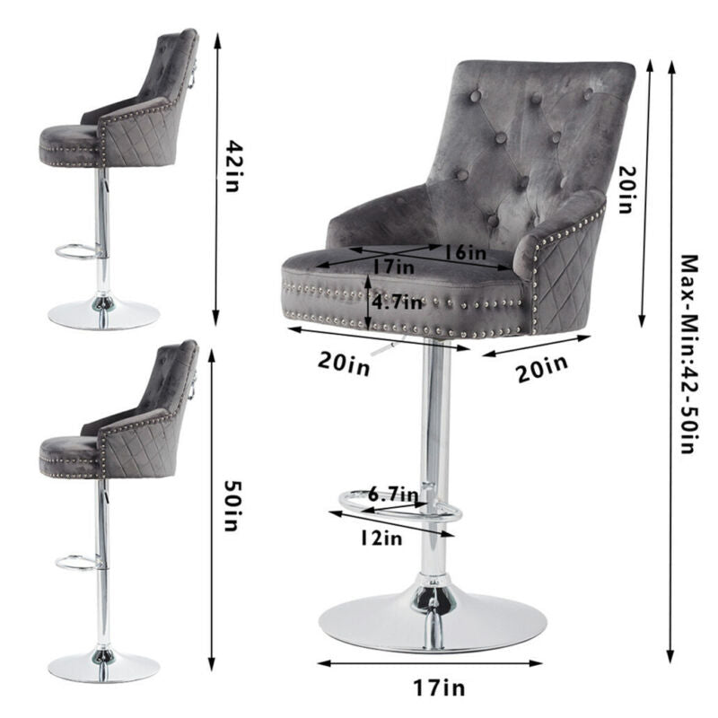 Velvet Bar Stool Chrome Stand Studded Button High Back Kitchen Chaise Chair Seat
