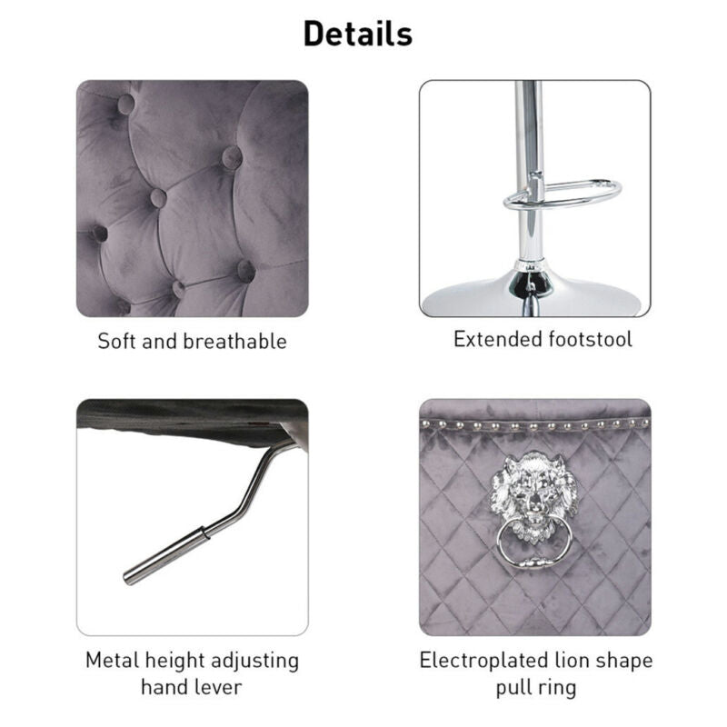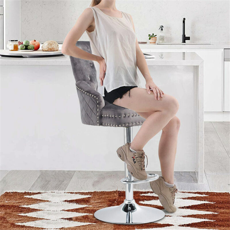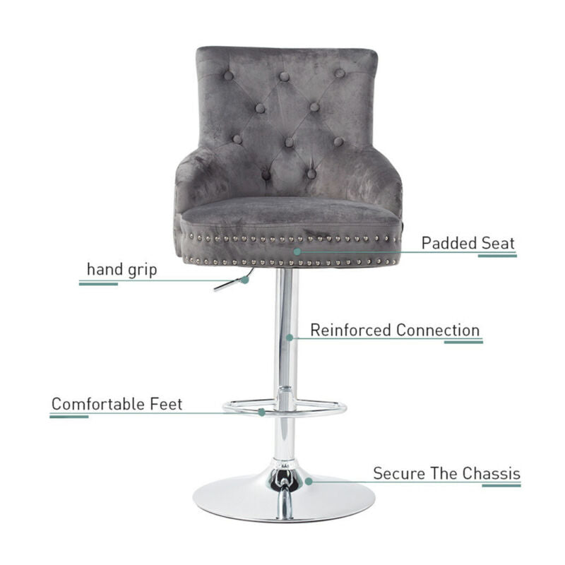 Velvet Bar Stool Chrome Stand Studded Button High Back Kitchen Chaise Chair Seat