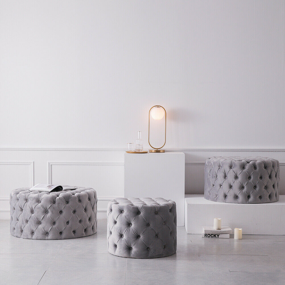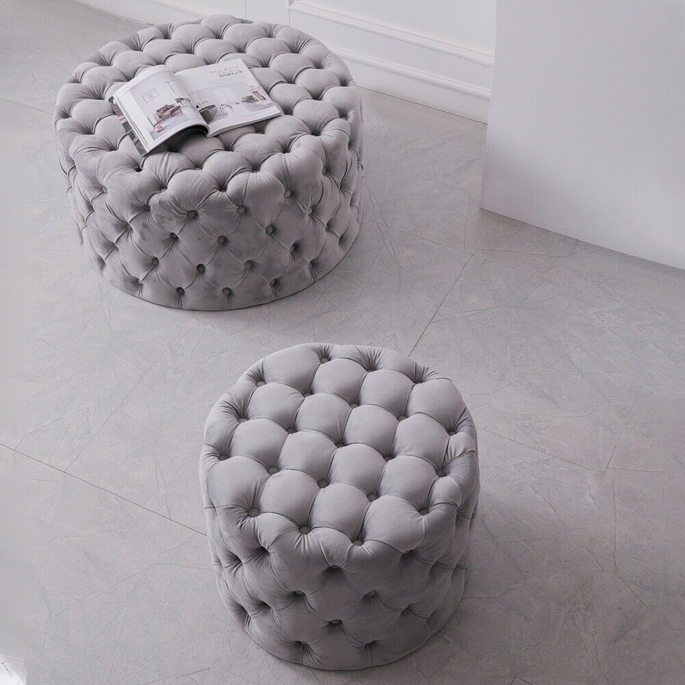 Velvet Chesterfield Footstool DEEP Button Pouffe Ottoman Foot Stool Coffee Table