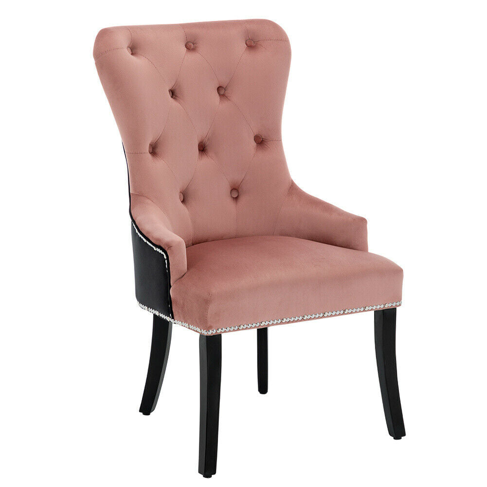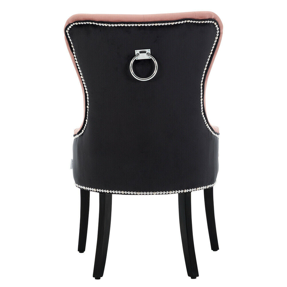 Velvet Dining Chair With Ring Knocker High Back Padded Seat Retro Button Studded