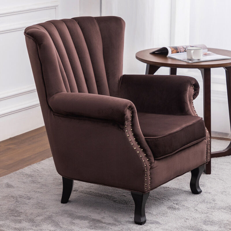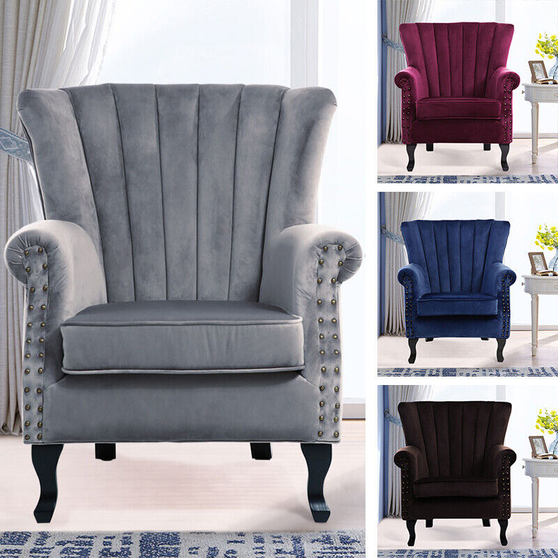 Velvet Fabric Armchair Lounge Tub Chair Queen Anne Fireside Sofa Oyster Wingback