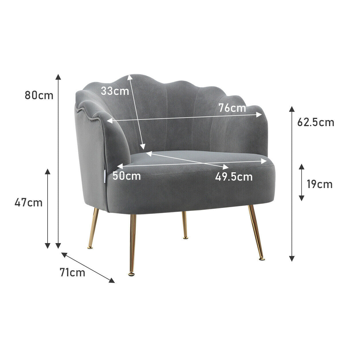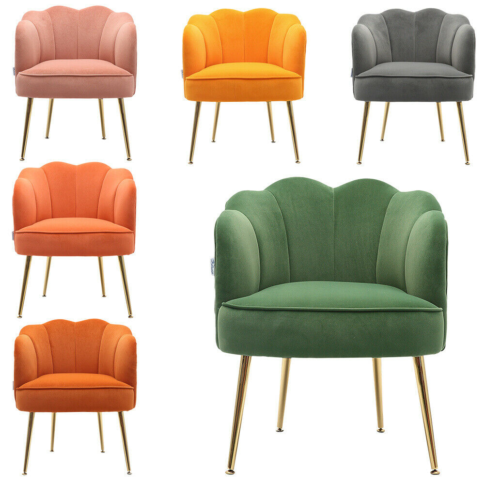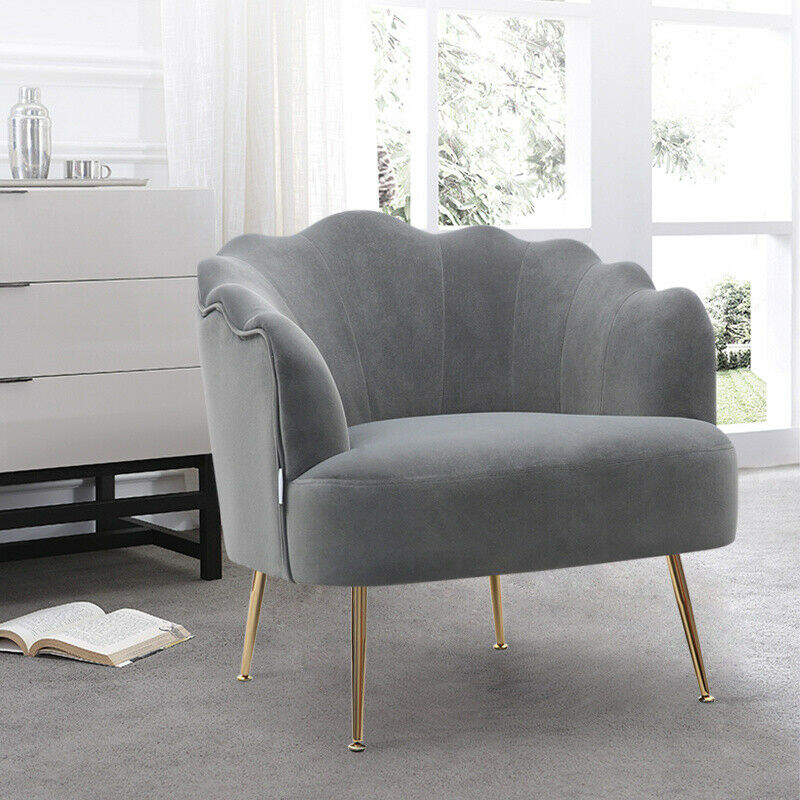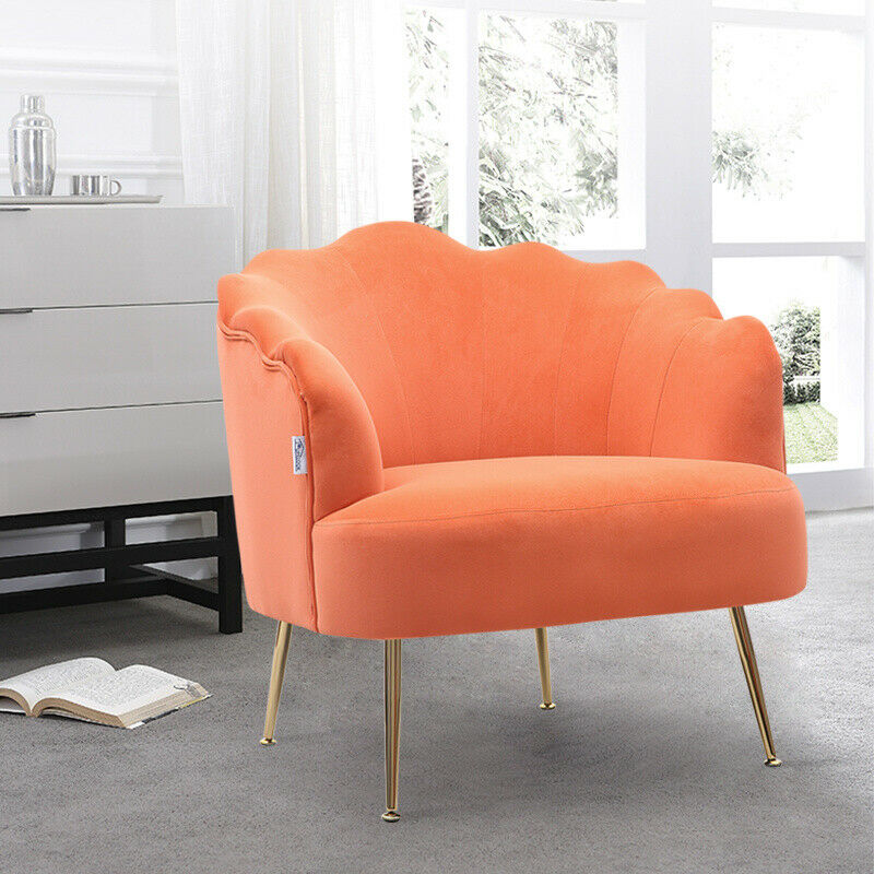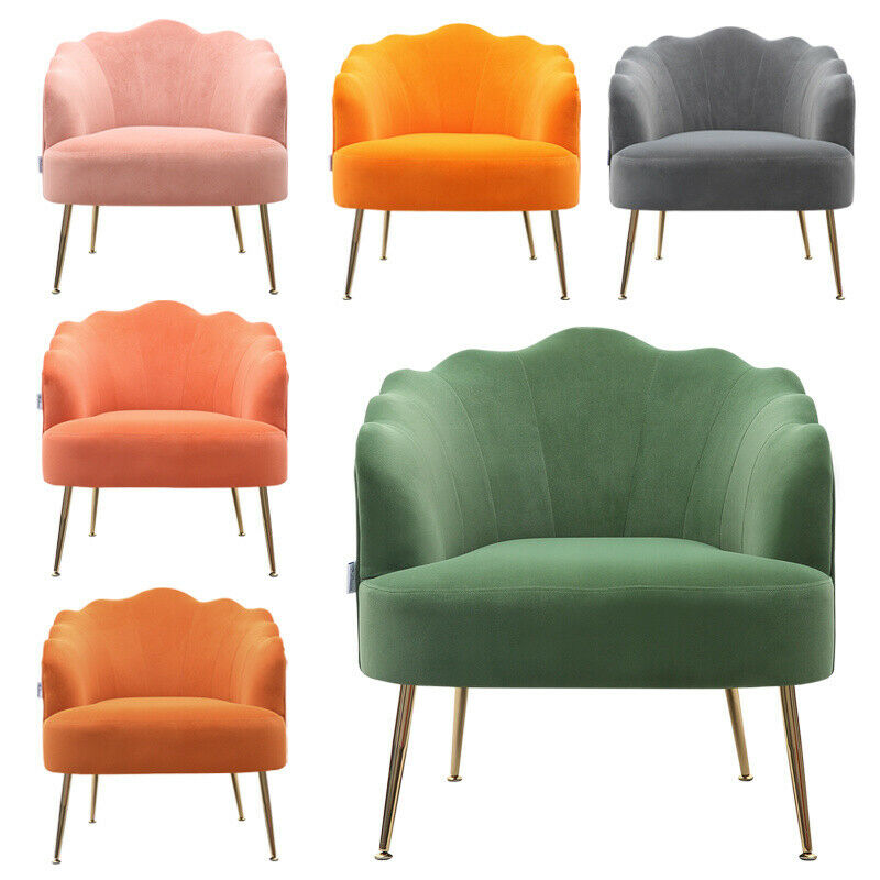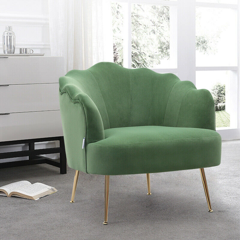 - Velvet Fabric Scallop Back Chair Lounge Occasional Accent Sofa Armchair 5 Styles
