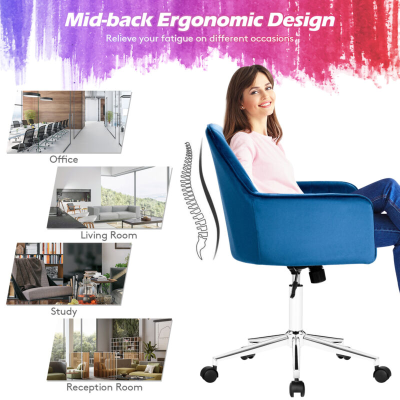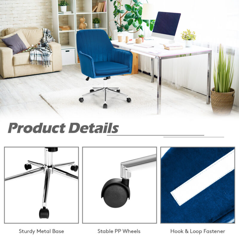 Velvet Leisure Chair Adjustable Computer Desk Chair Rolling Makeup Armchair