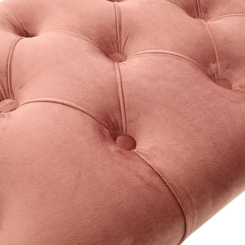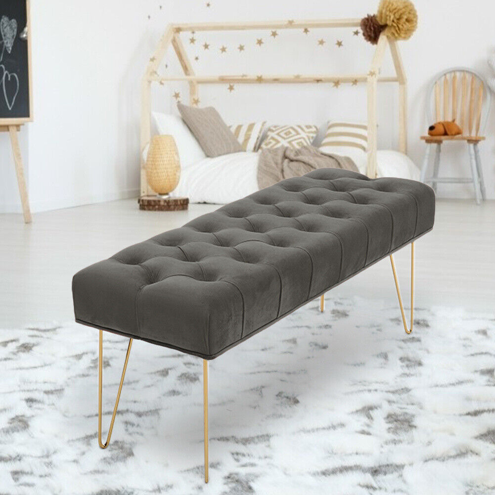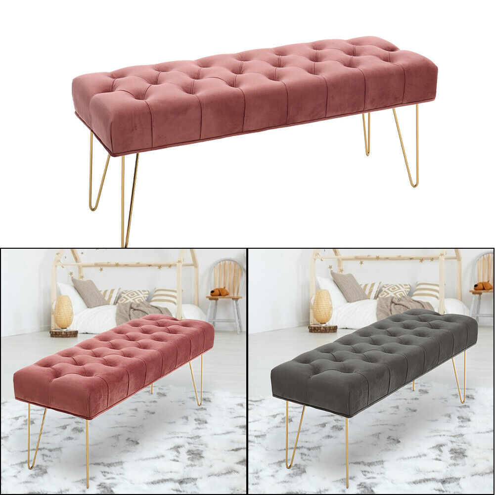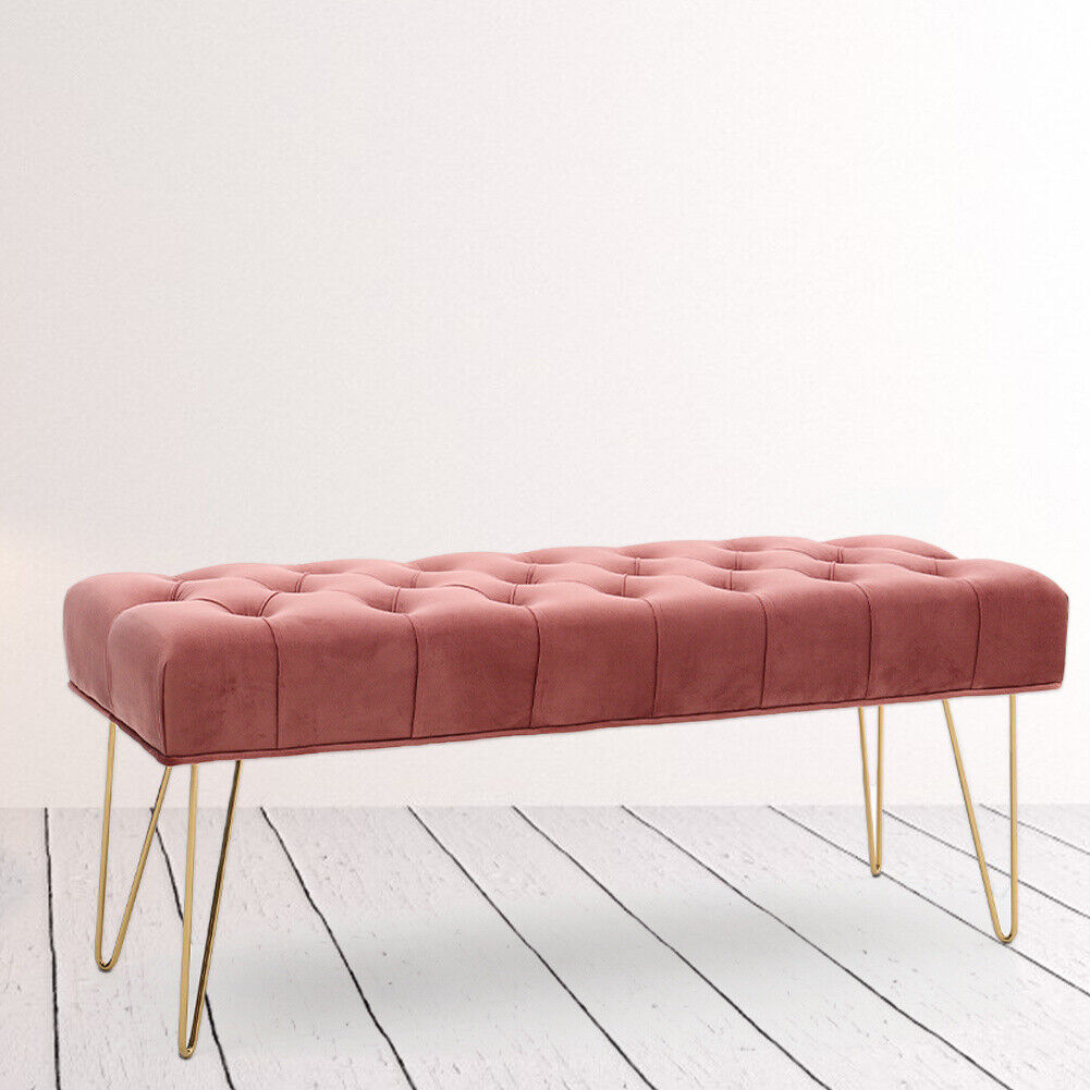 Velvet Long Seat Bench Dining Chairs Soft Padded Metal Legs Lounge Stool Home