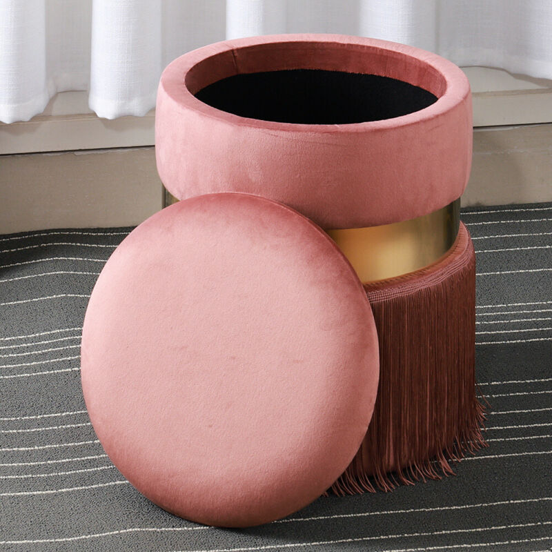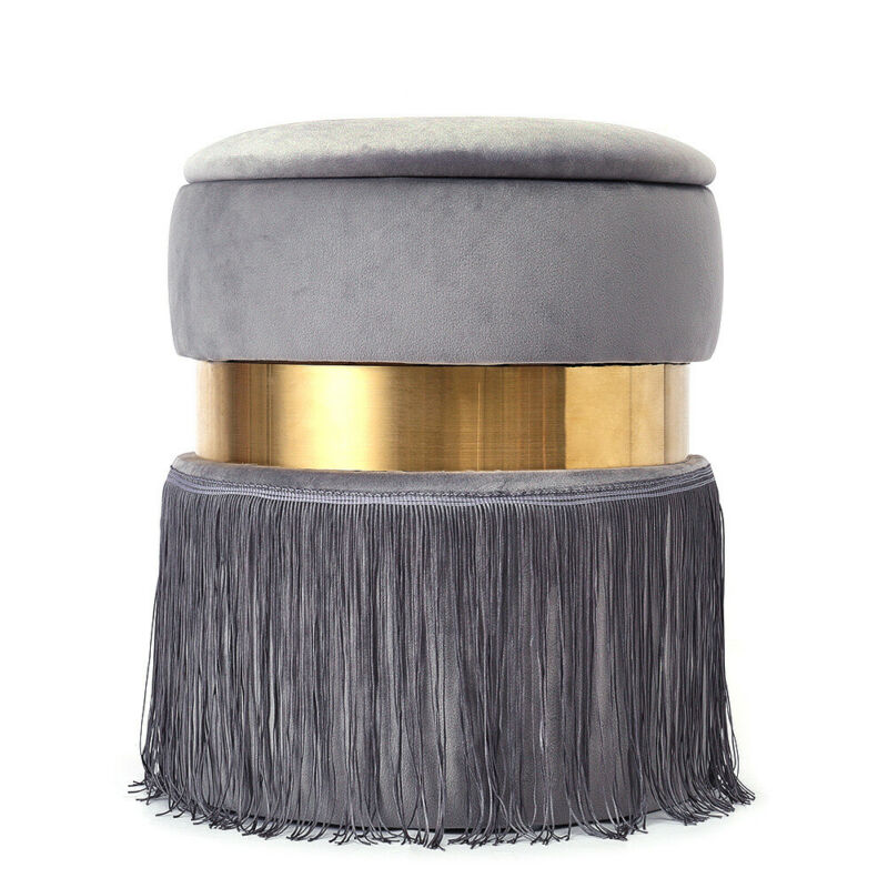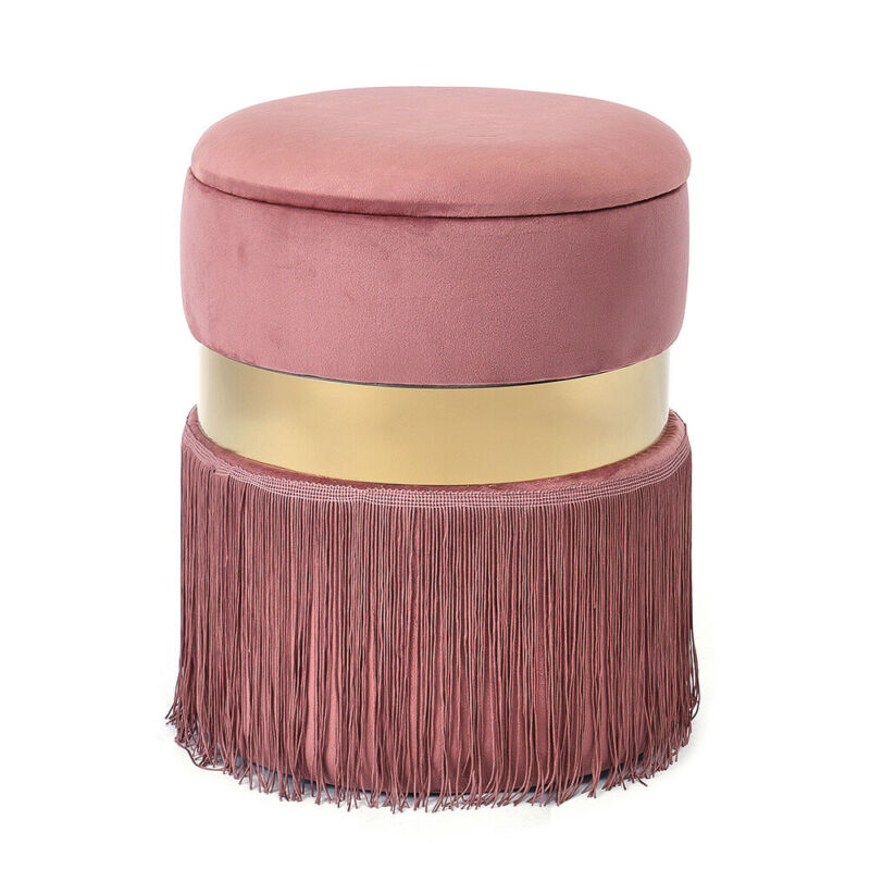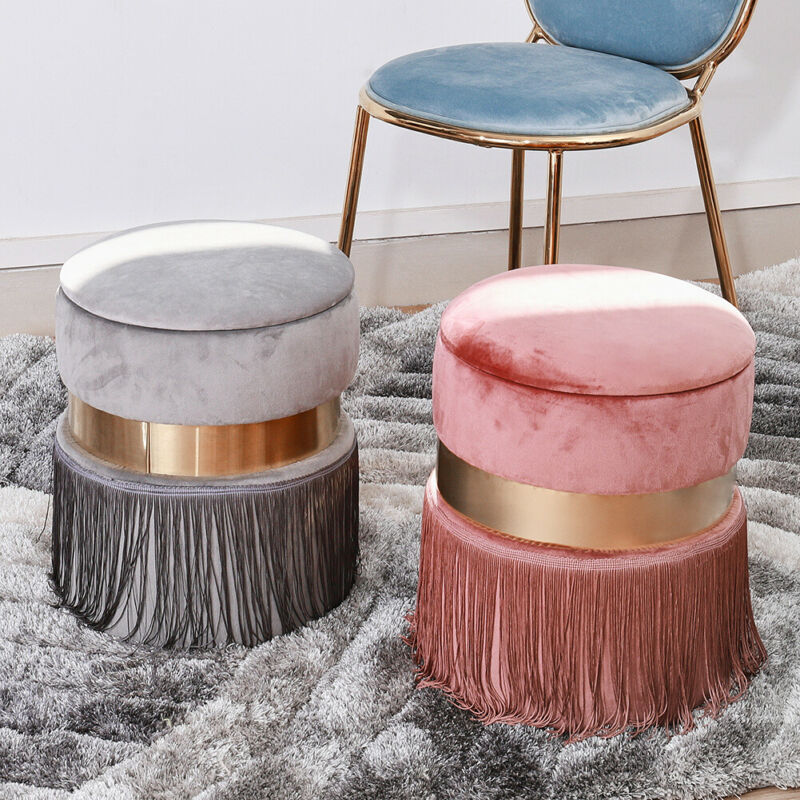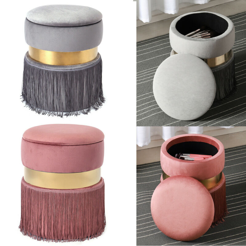 Velvet Padded Ottoman Storage Stool Pouffe Tassel Dressing Table Vanity Chair