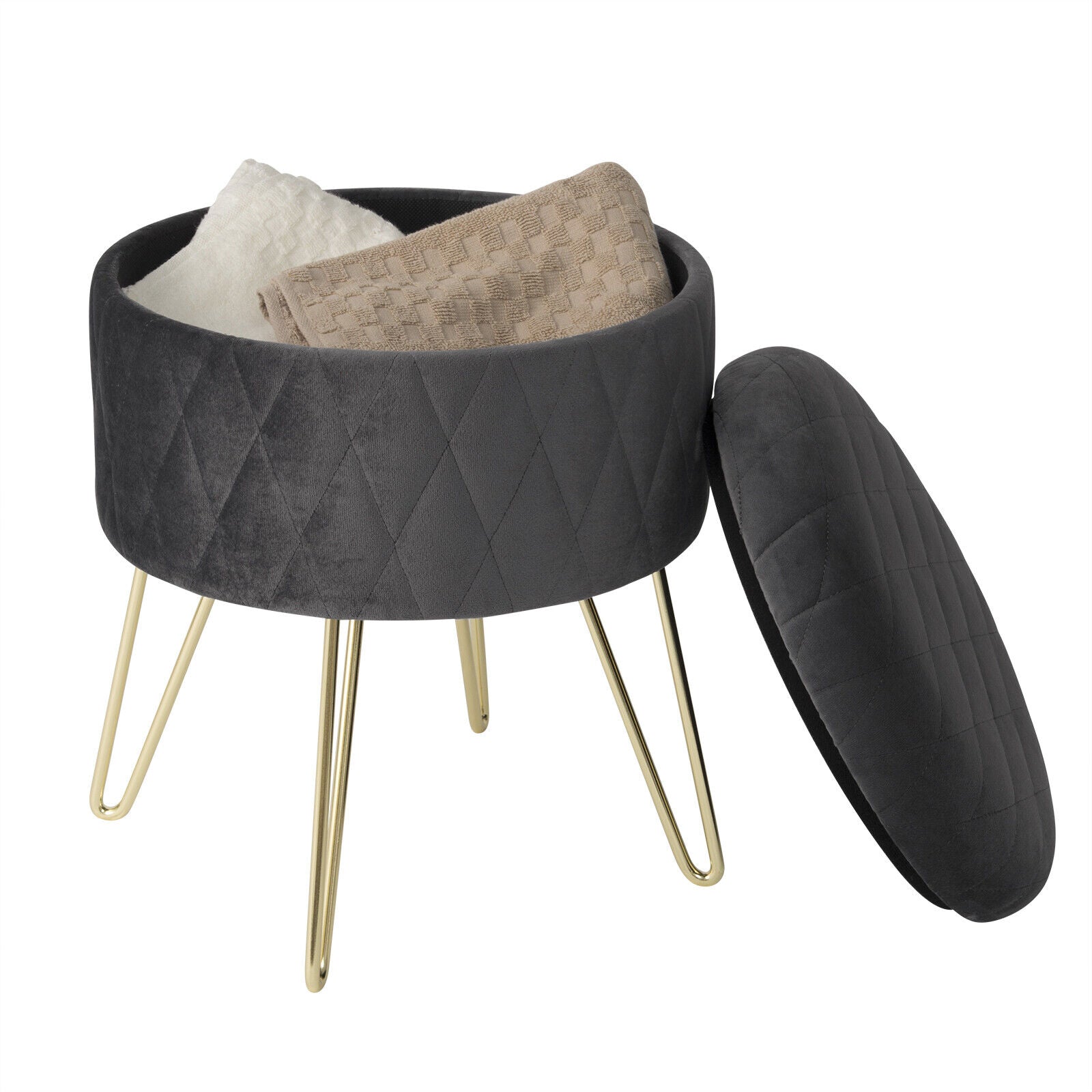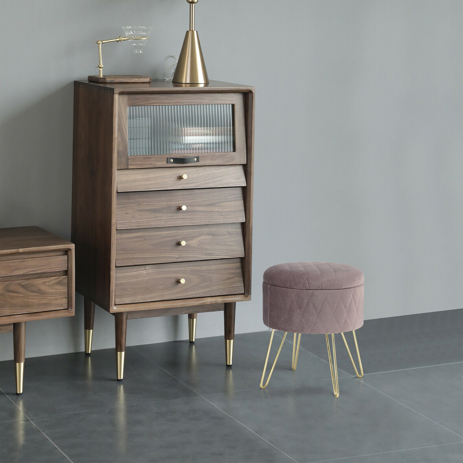 Velvet Round Ottoman Footstool with Storage Sofa Foot Stool Living Room Footrest