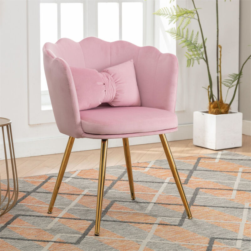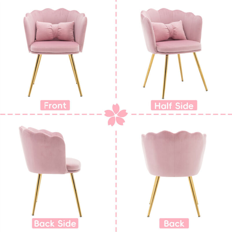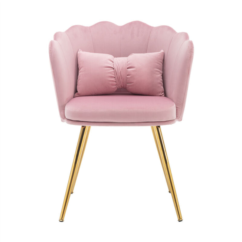 Velvet Upholstered Accent Chair Wing Back Armchair with Pilow & Metal Legs Pink