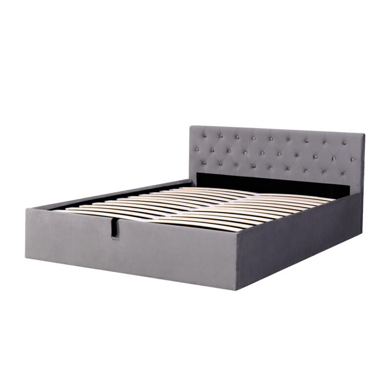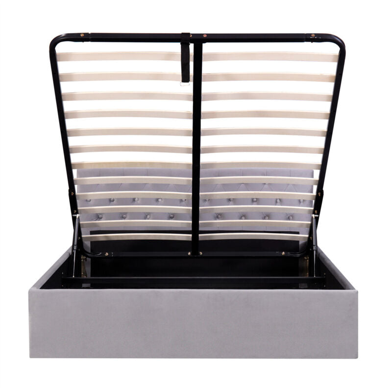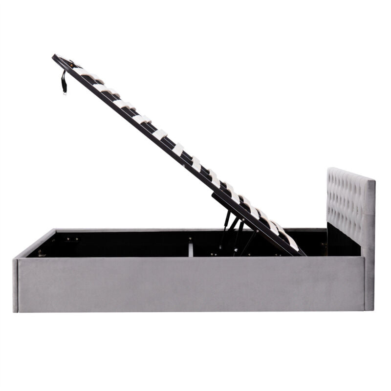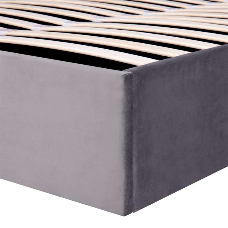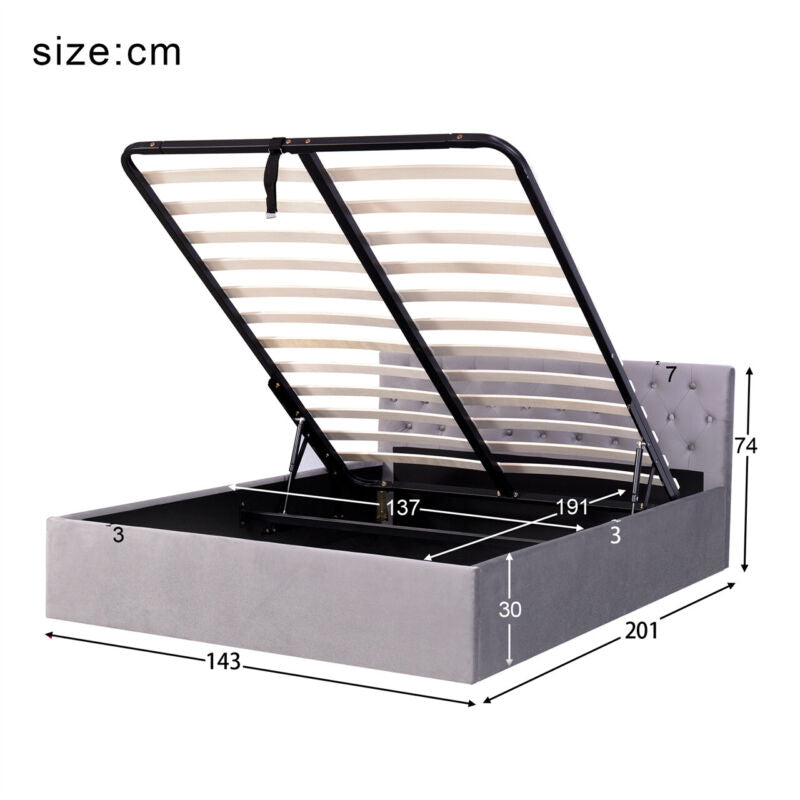 Velvet Upholstered Bed Frame 4ft6 Double Size Storage Bed With Headboard QF
