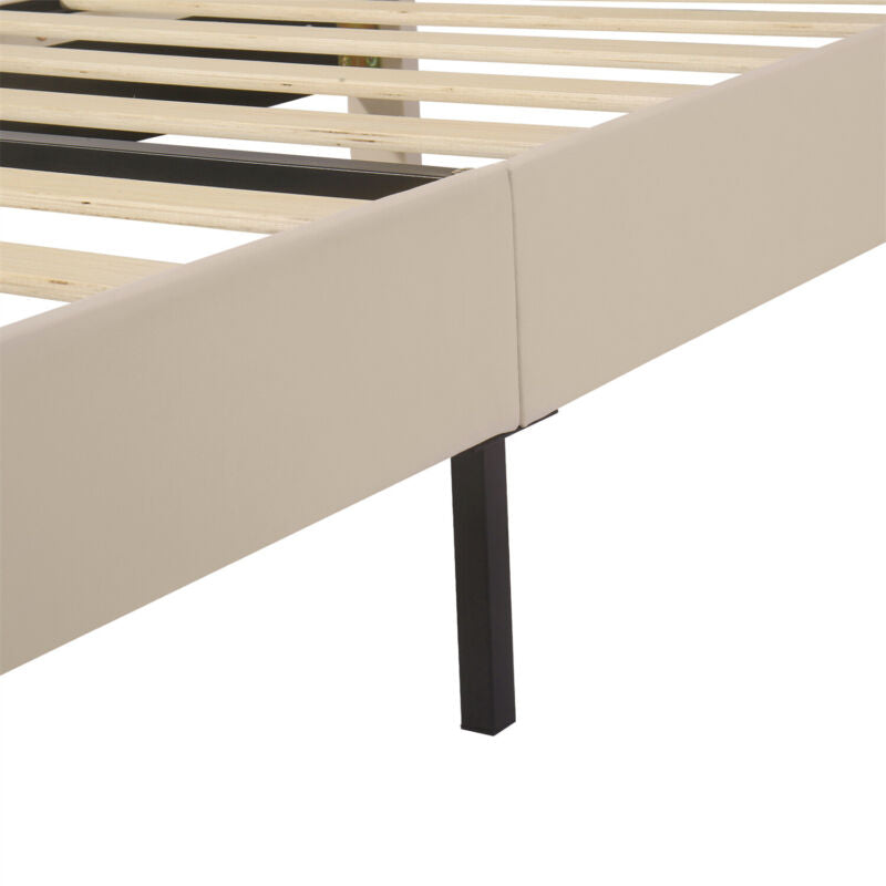 Velvet Upholstered Bed Single Size Bed 3FT with Headboard for Kids Teens Beige