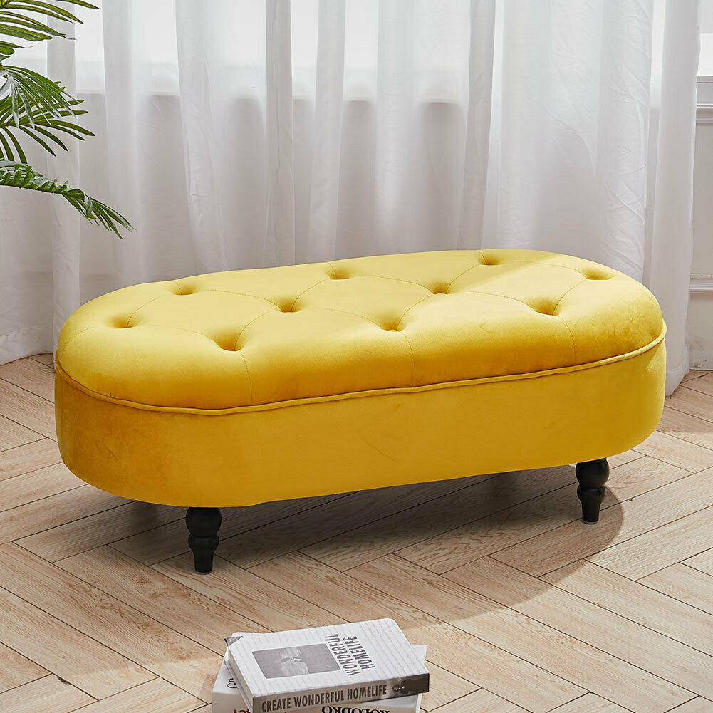 Velvet Upholstered Bench Bedroom Hallway Waiting Room Stool Window Seat Pouffe
