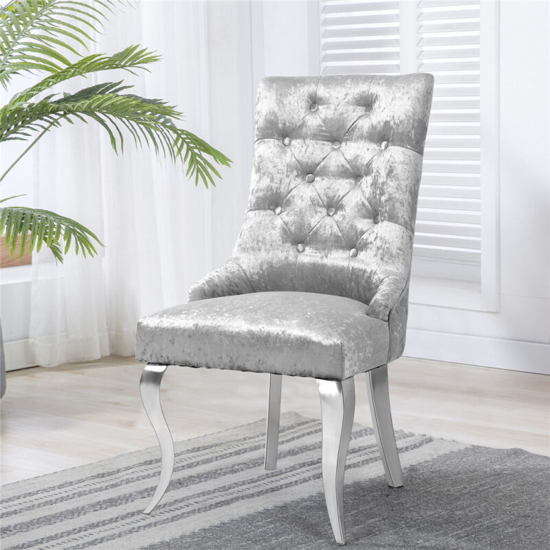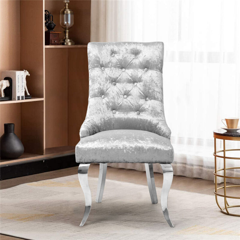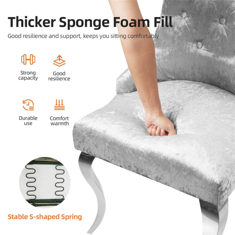Velvet Upholstered Dining Chair Button Tufted Leisure Bar Chair & Lion Knocker
