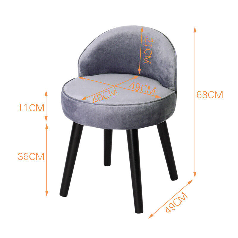 Velvet Upholstered Low Back Dressing Table Stool Bedroom Make Up Vanity Chair