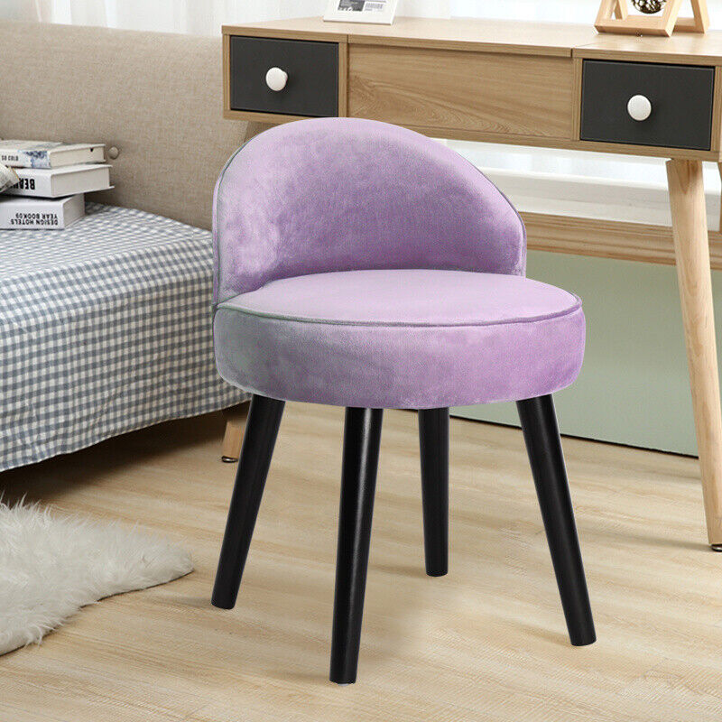 Velvet Upholstered Low Back Dressing Table Stool Bedroom Make Up Vanity Chair