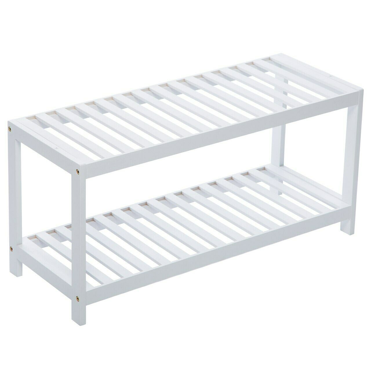 2 TIER NATURAL BAMBOO SHOE RACK ORGANISER STAND STORAGE SHELF UNIT