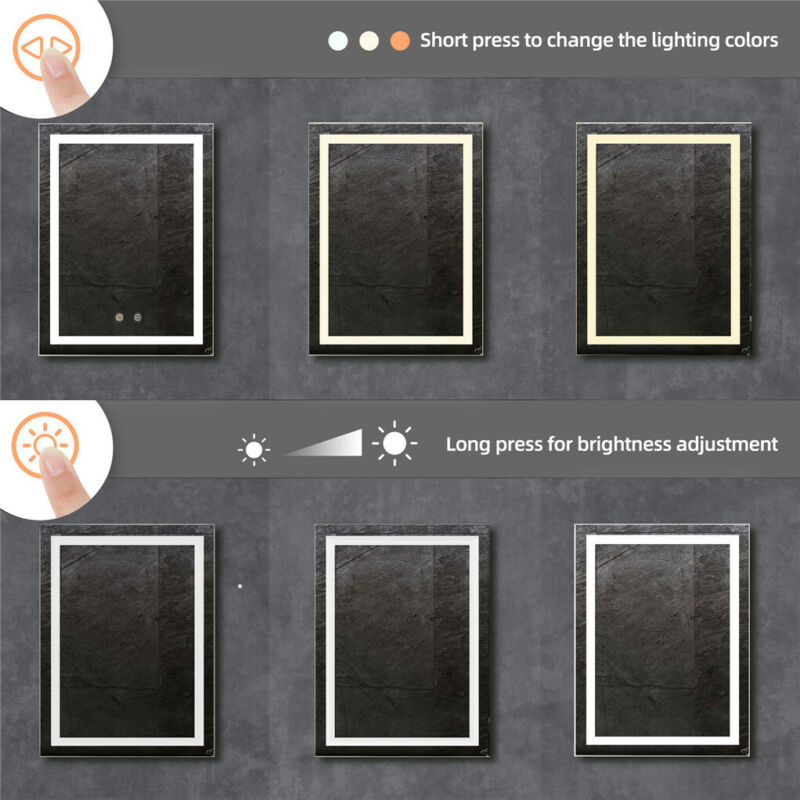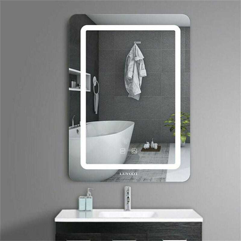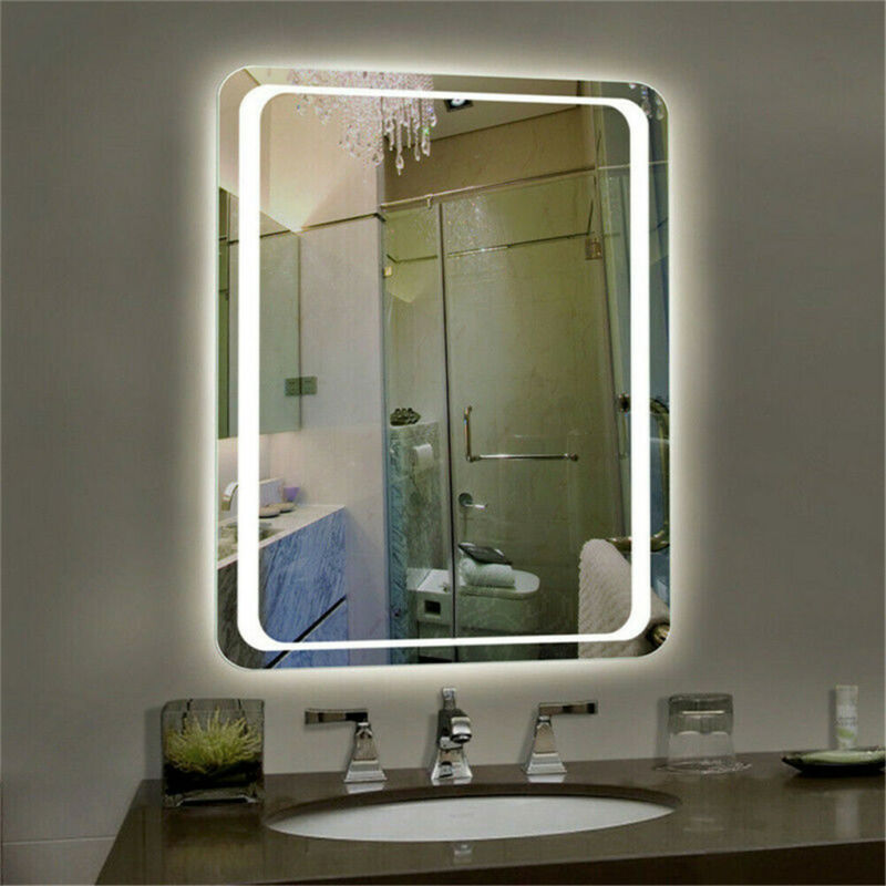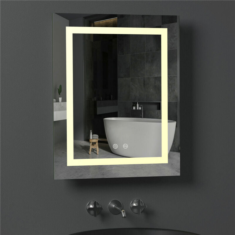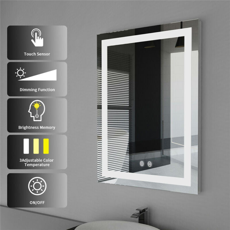 Vertical LED Bathroom Mirror Lighted Vanity Mirror Smart Touch Button Hung Wall