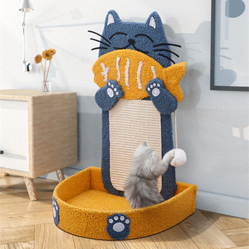 Vertical Scratching Board Cartoon Cat Eating Fish Grinding Claw Scrtacher Mat