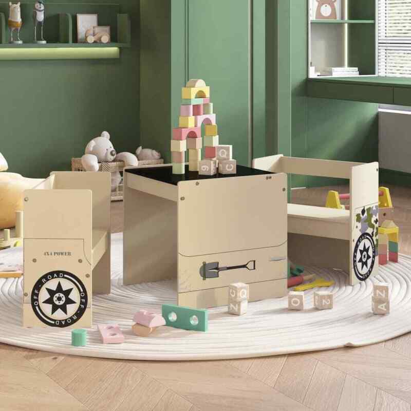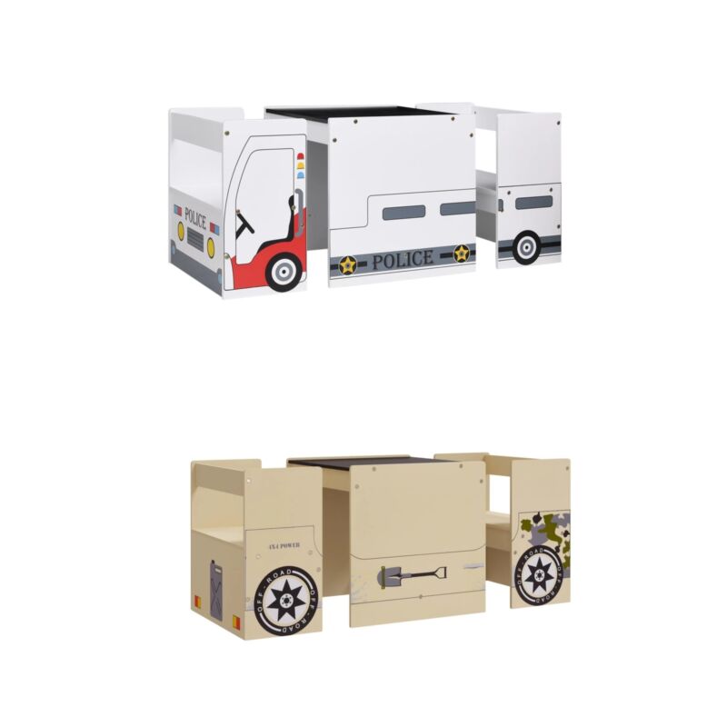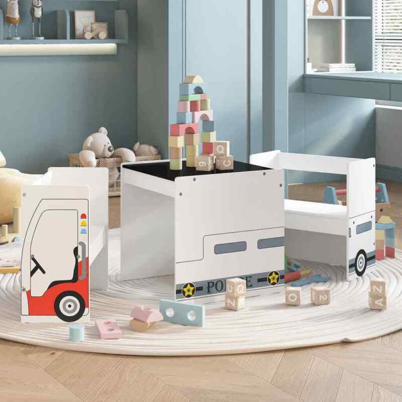 vidaXL 3 Piece Kids Table and Chair Set Police Car Design MDF Safe and durable