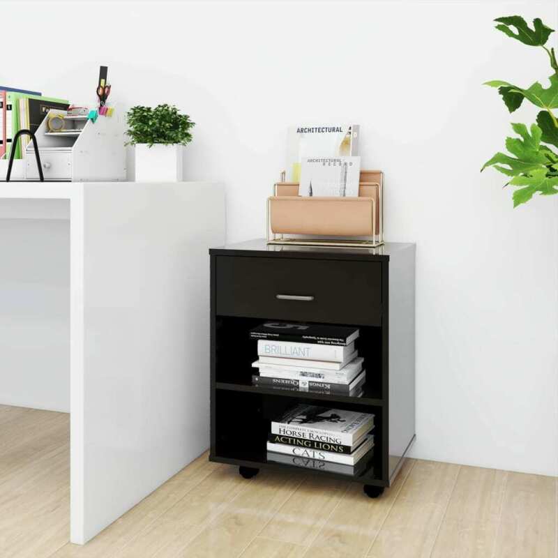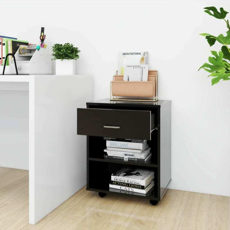 Rolling Cabinet High Gloss Black 46x36x59 cm Chipboard Organiser