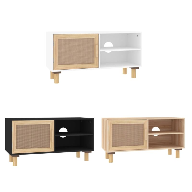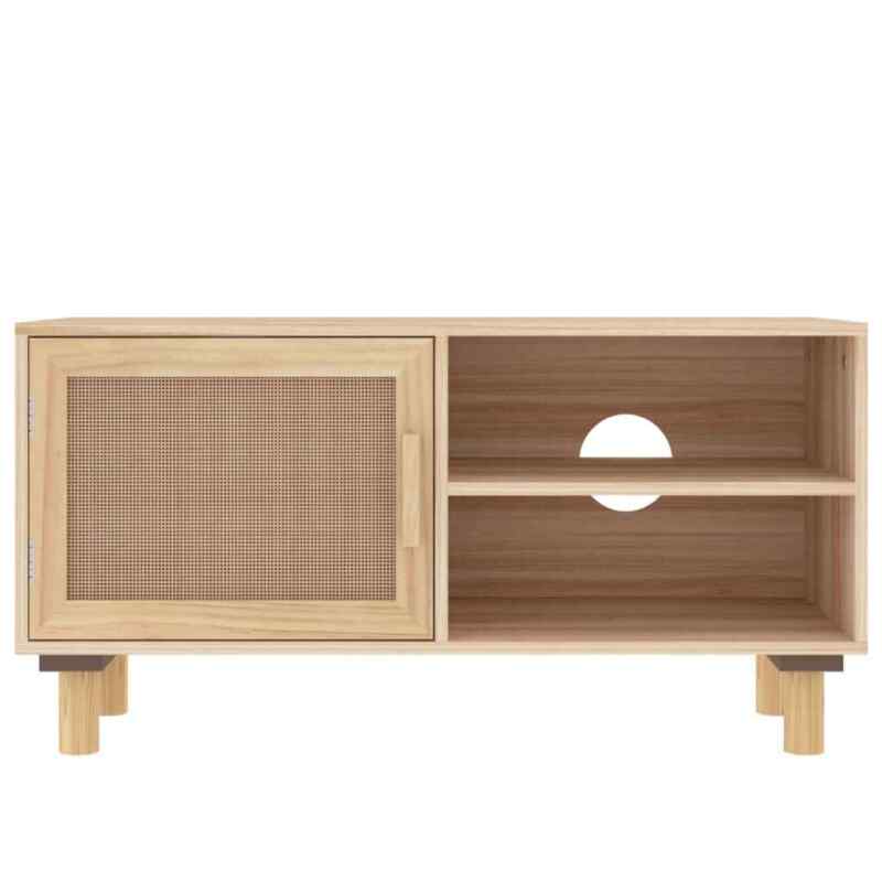 TV Cabinet Solid Wood Pine and Natural Rattan Strong stability durable