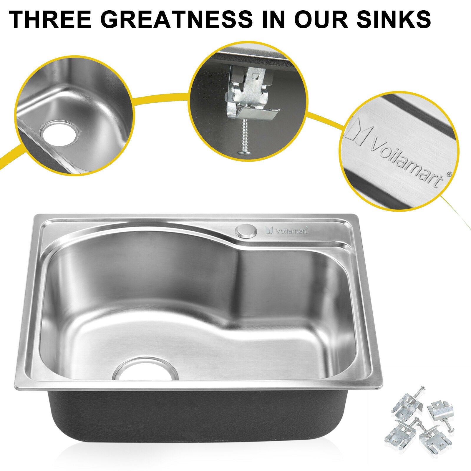 Stainless Steel Kitchen Sink Single Bowl Catering Topmount Square