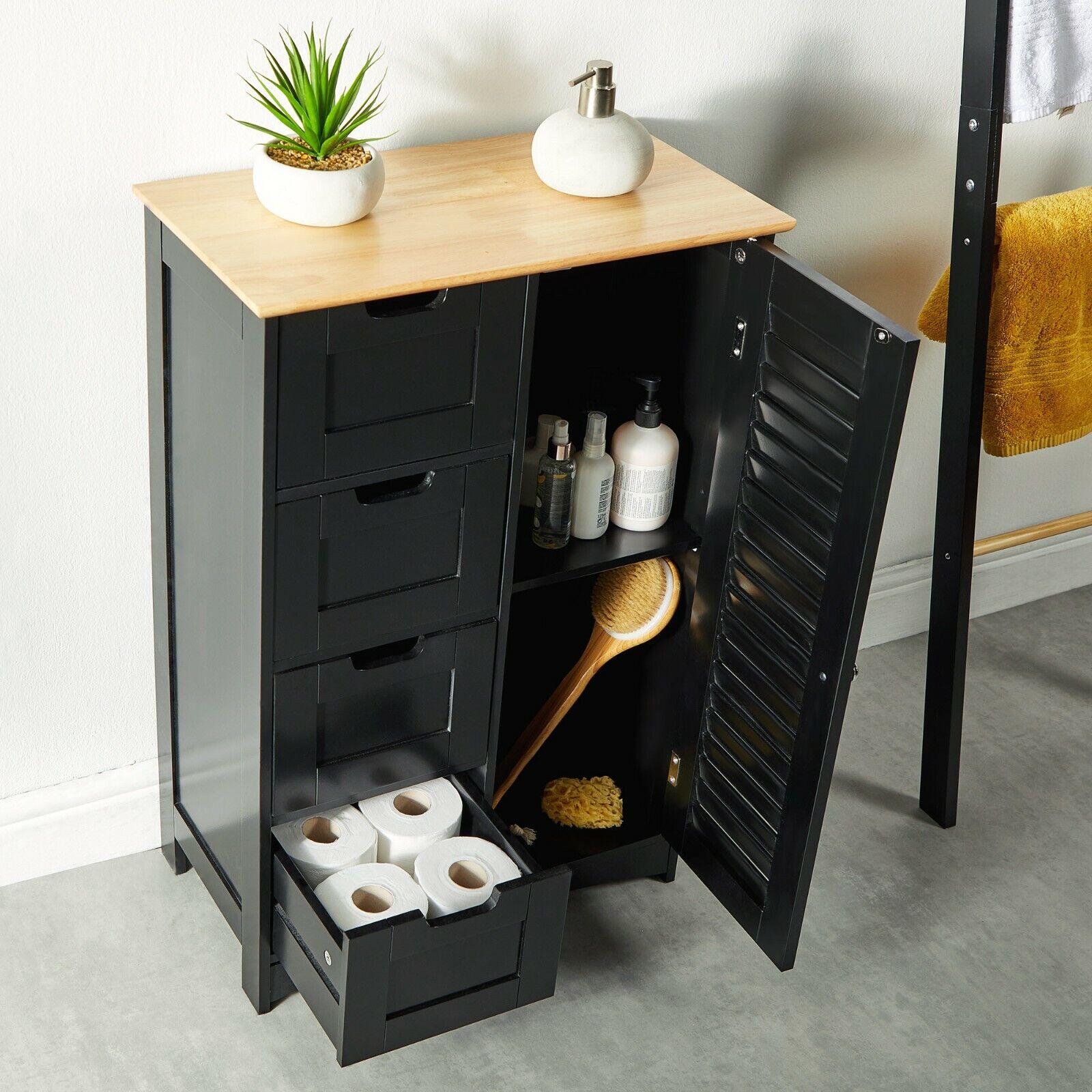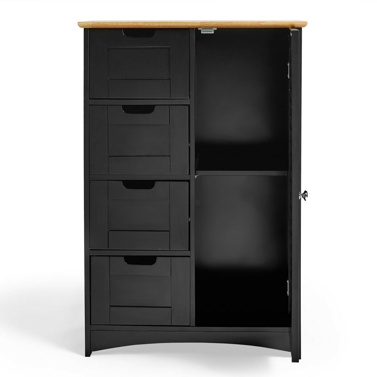 Bathroom Storage Unit | Black Wooden Cabinet Cupboard w/ 4 Drawers