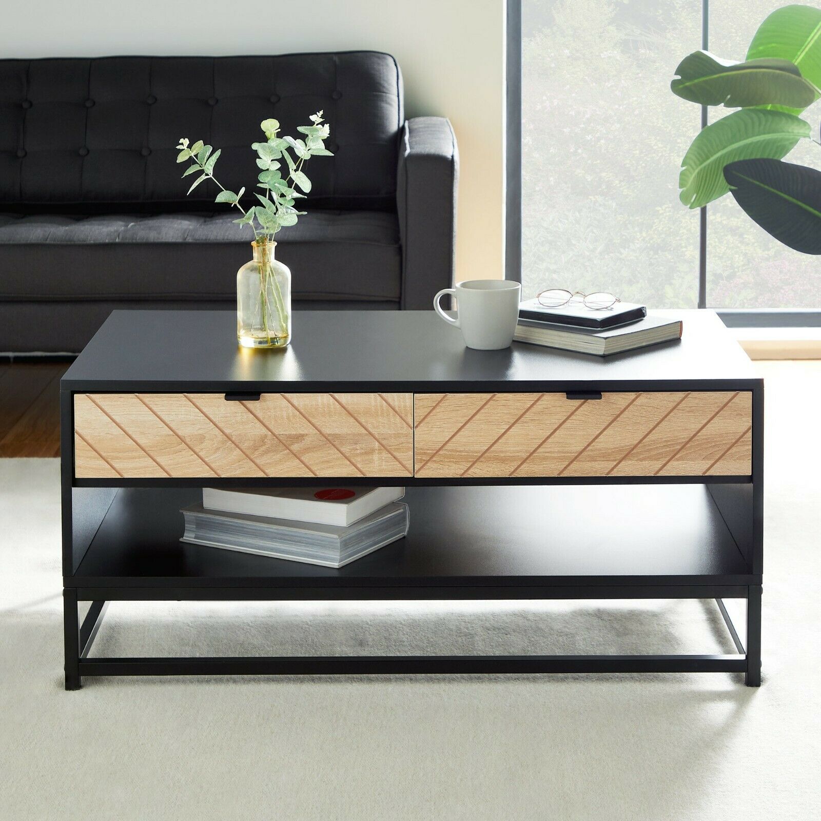 VonHaus Coffee Table | Classic Modern Tea Table w/ 2 Spacious Storage Drawers