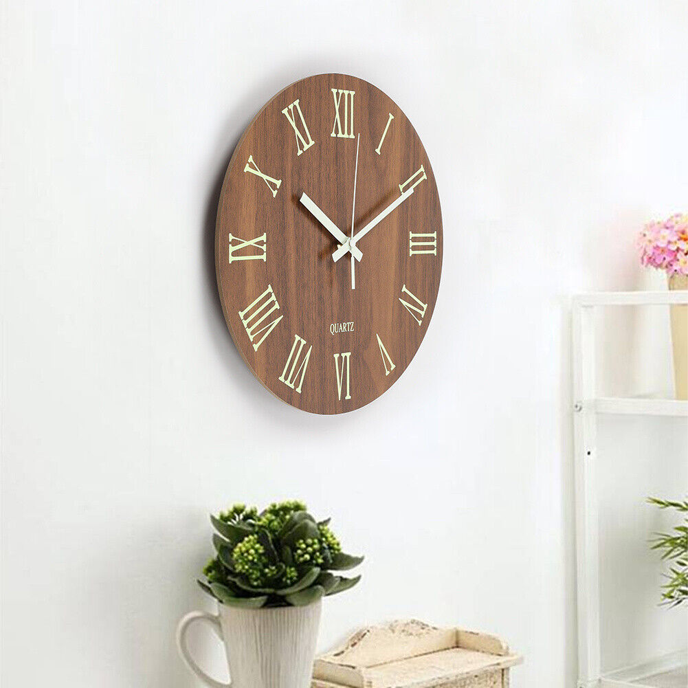 Wall Clock Illuminated / Solid Numerals Silent Retro Chic Decor 12-13inch Clocks