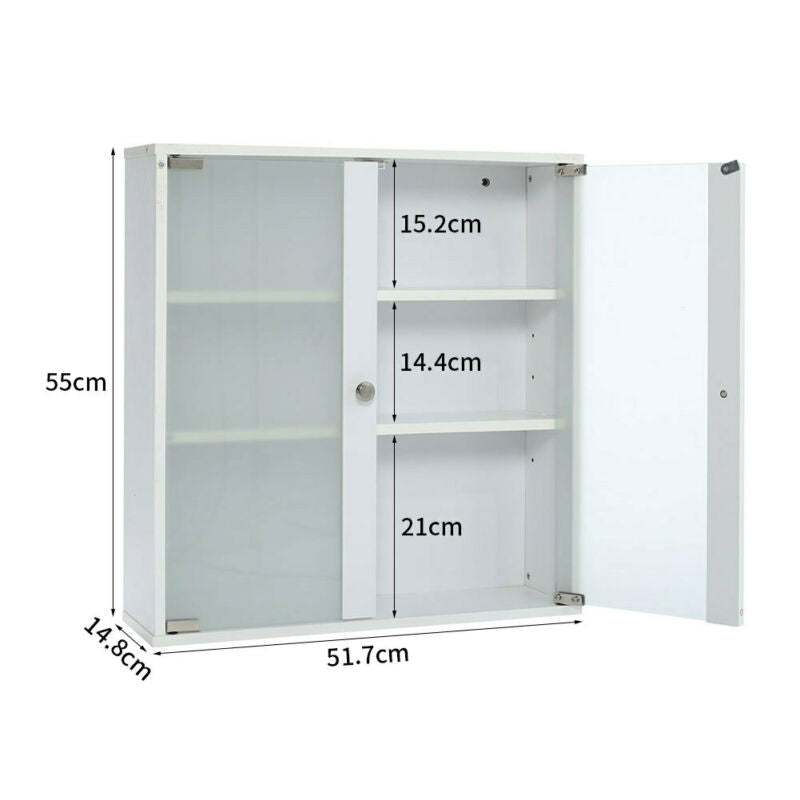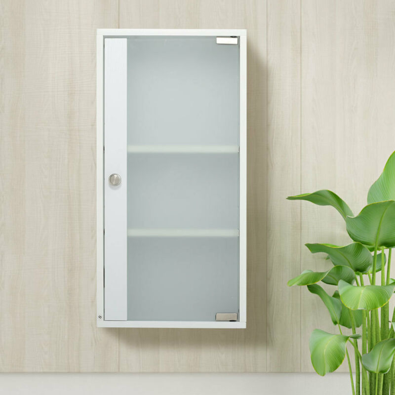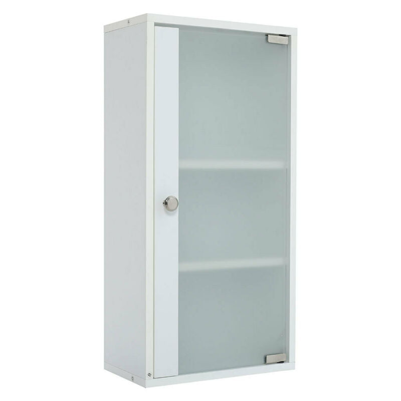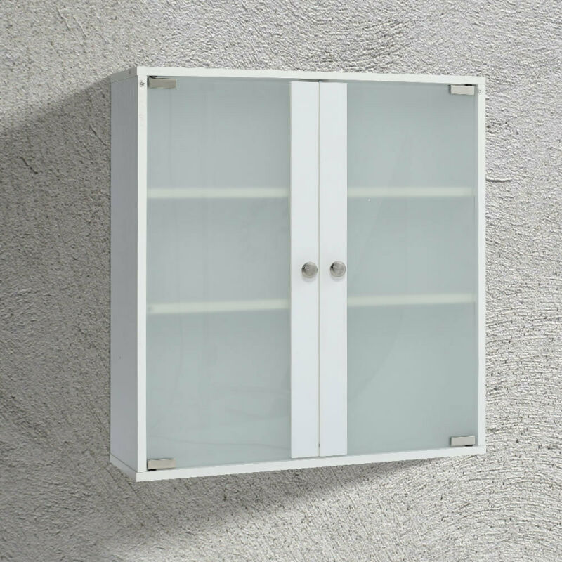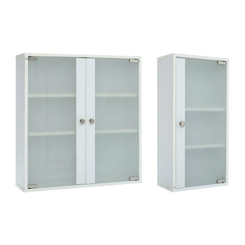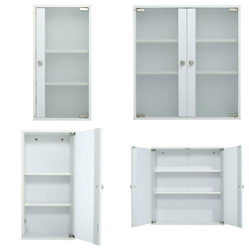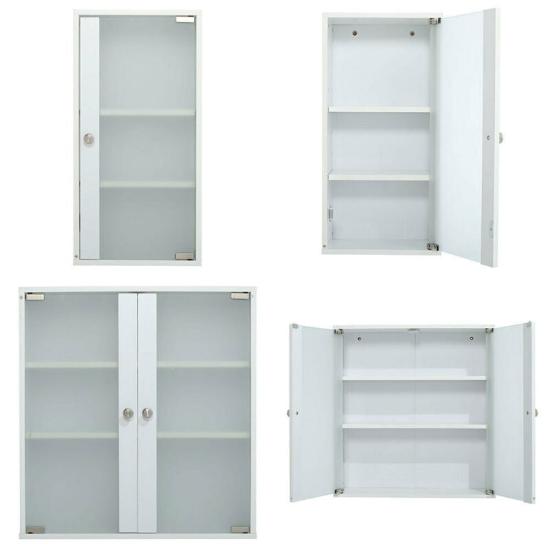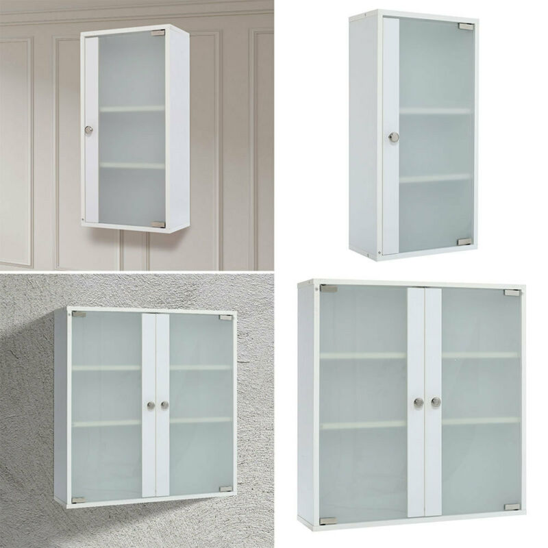 Wall-Mount Frosted Glass Cabinet Vanity Storage Cupboard Shelf Office 1 2 Doors