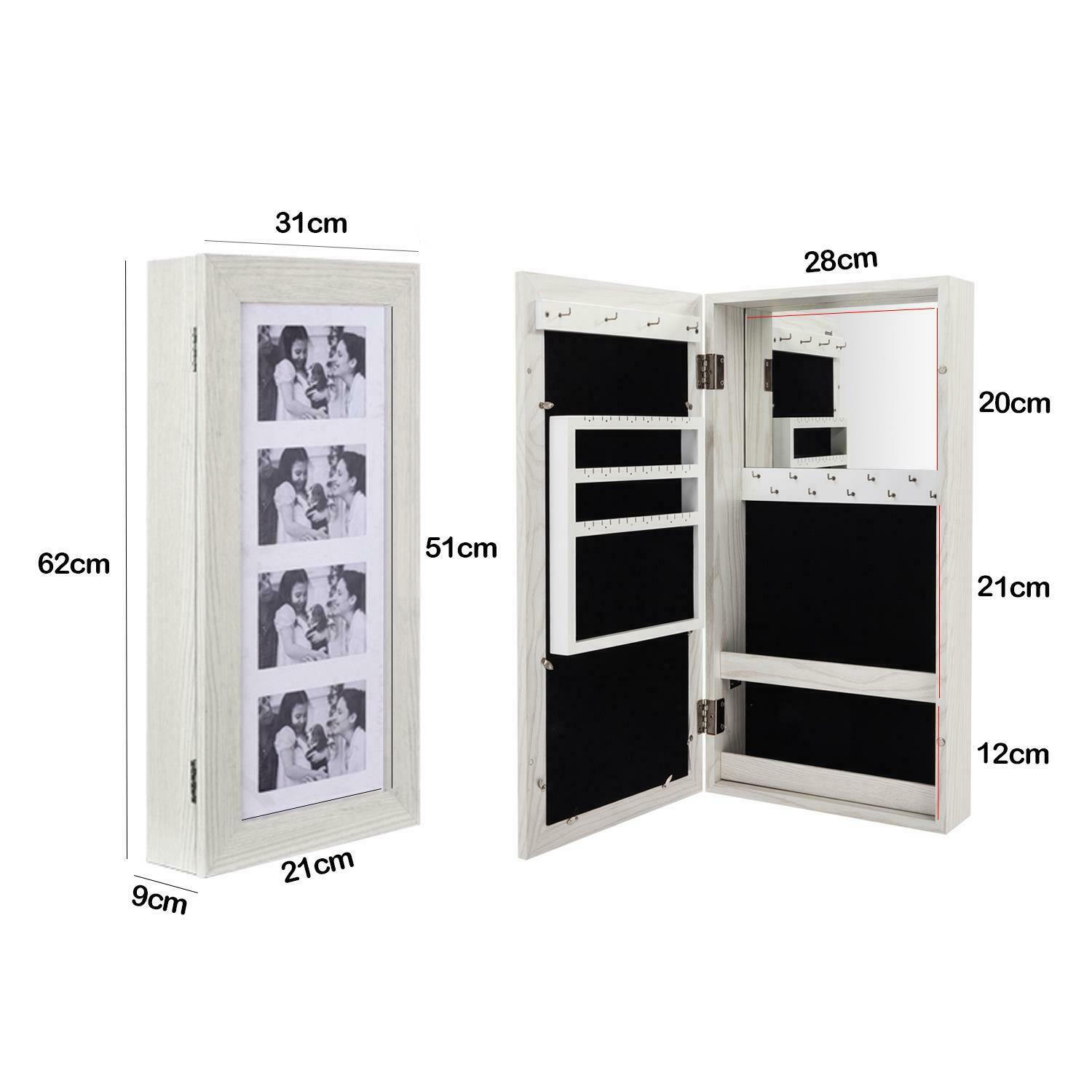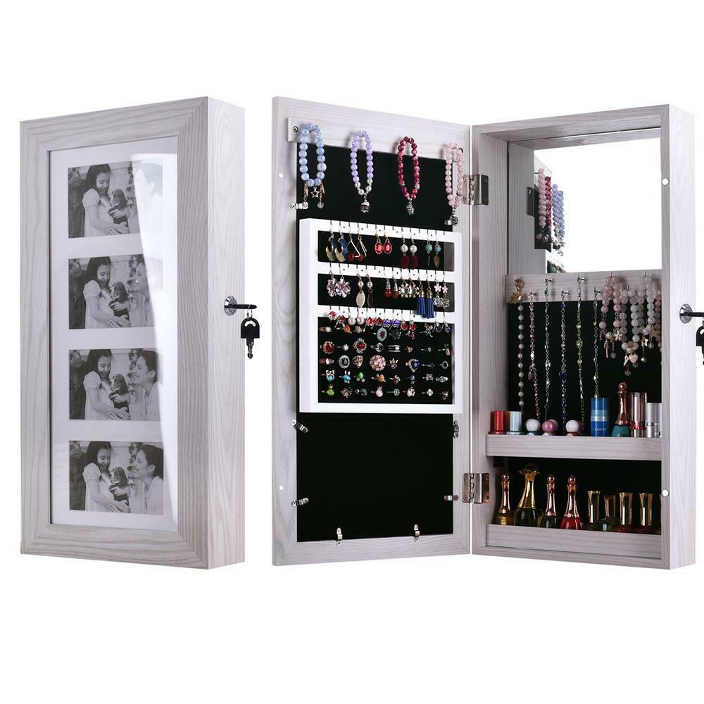 Wall Mount Jewellery Box Frame Mirror Cosmetic Storage Cabinet Lockable UK