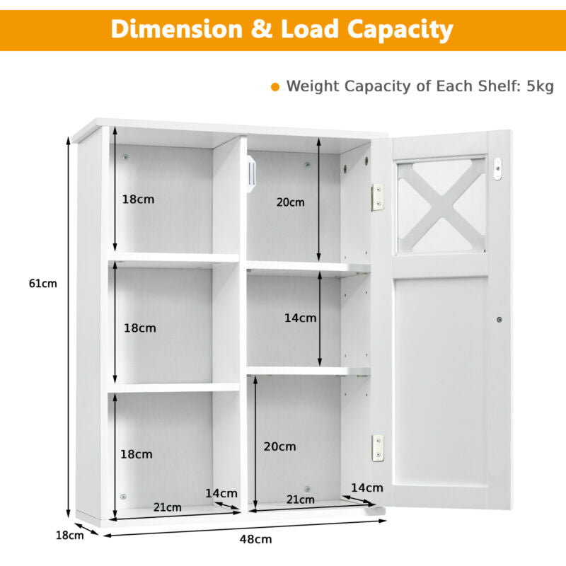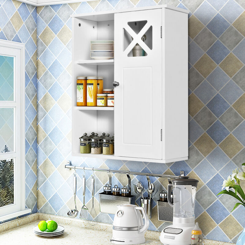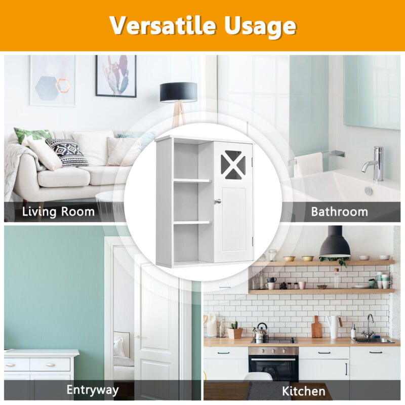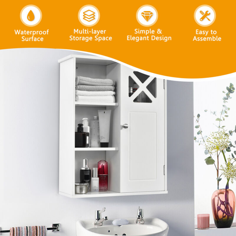 Wall-mounted Bathroom Cabinet 3 Tiers Medicine Storage Organizer with Door