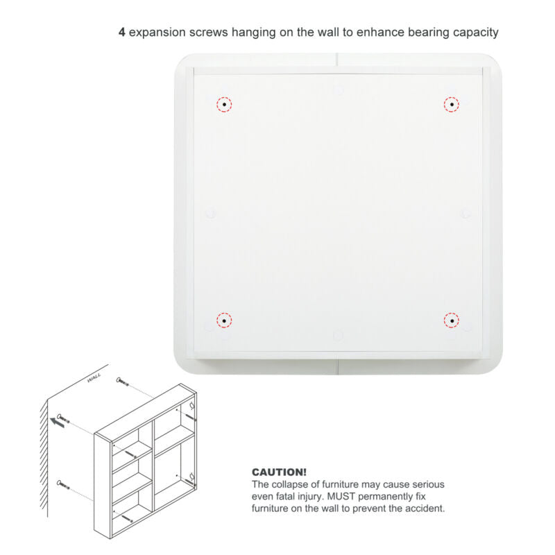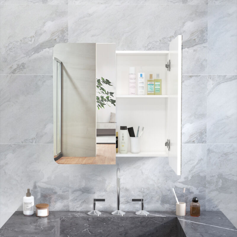 Wall Mounted Bathroom Cabinet Mirrored Double Door Storage Shelves 68Lx60H cm