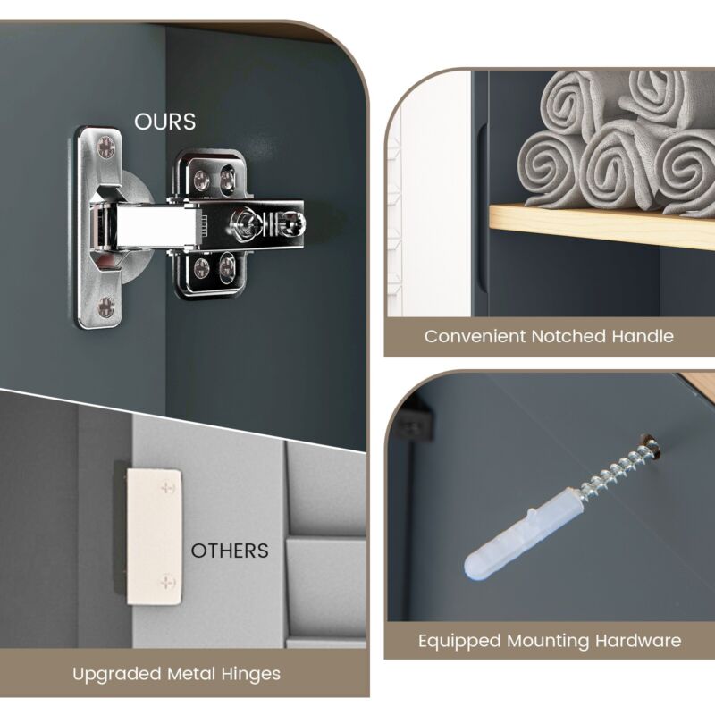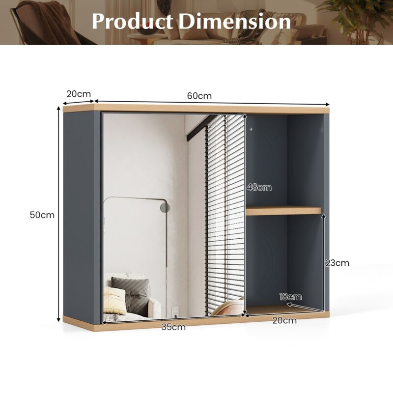 Wall-Mounted Bathroom Mirror Cabinet Door Medicine Cabinet Adjustable Shelf