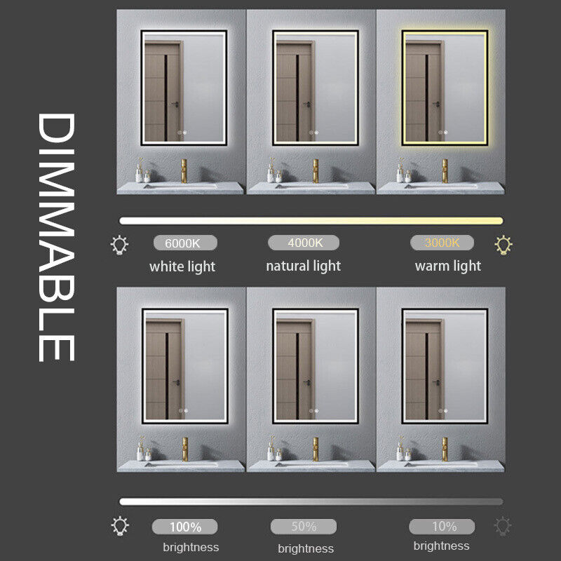 Wall Mounted Bathroom Vanity Mirror with Anti-Fog Demister Dimmable LED Lights