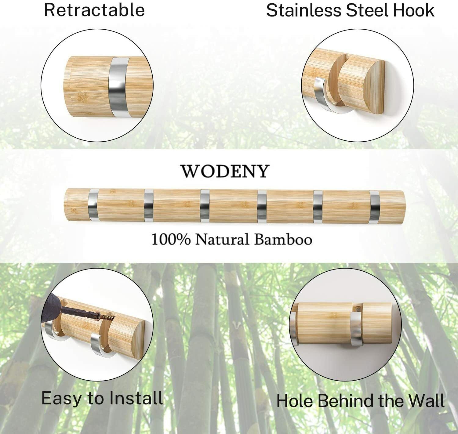 Wall Mounted Coat Rack 6 Wooden Door Hooks Hat Clothes Hanging Storage Racks UK
