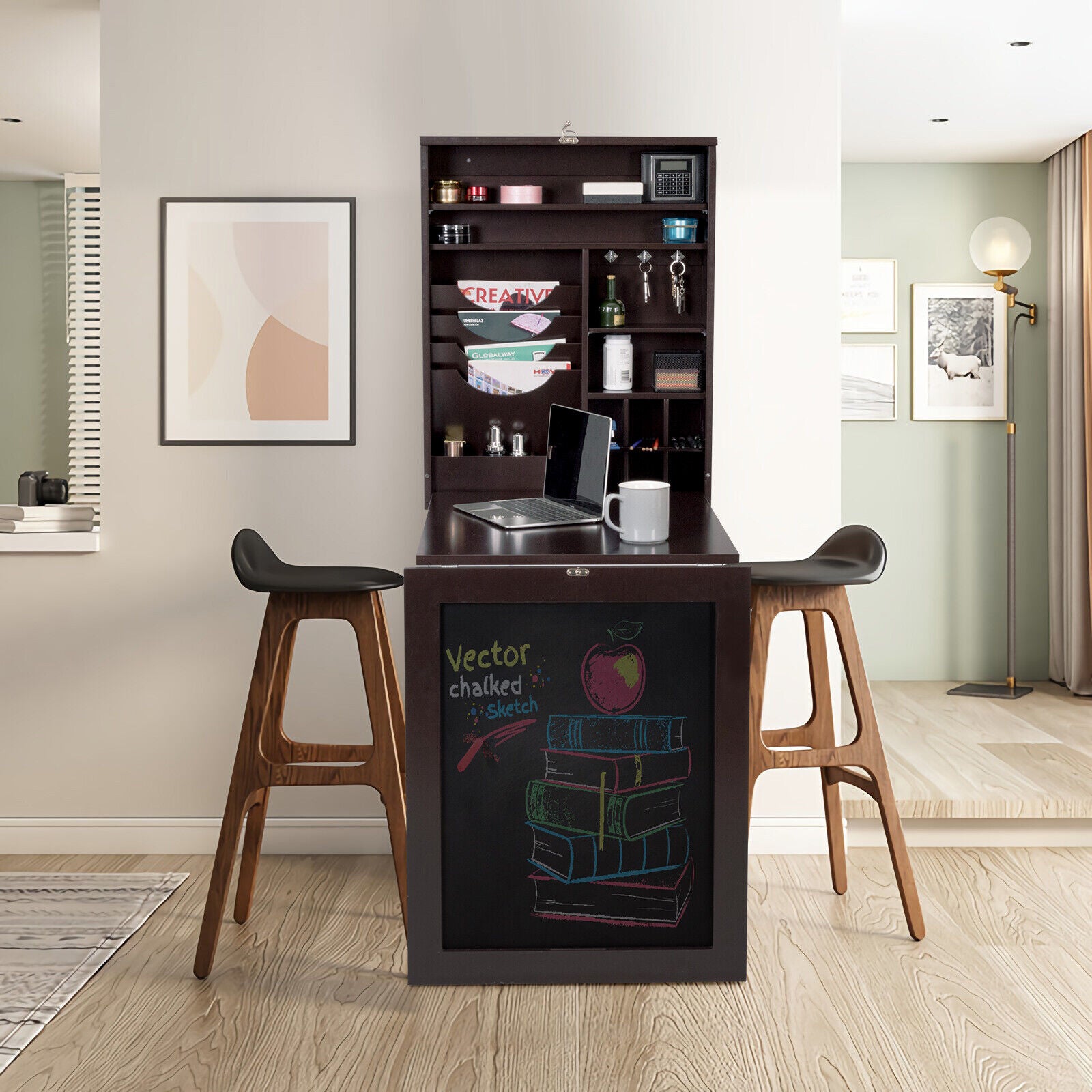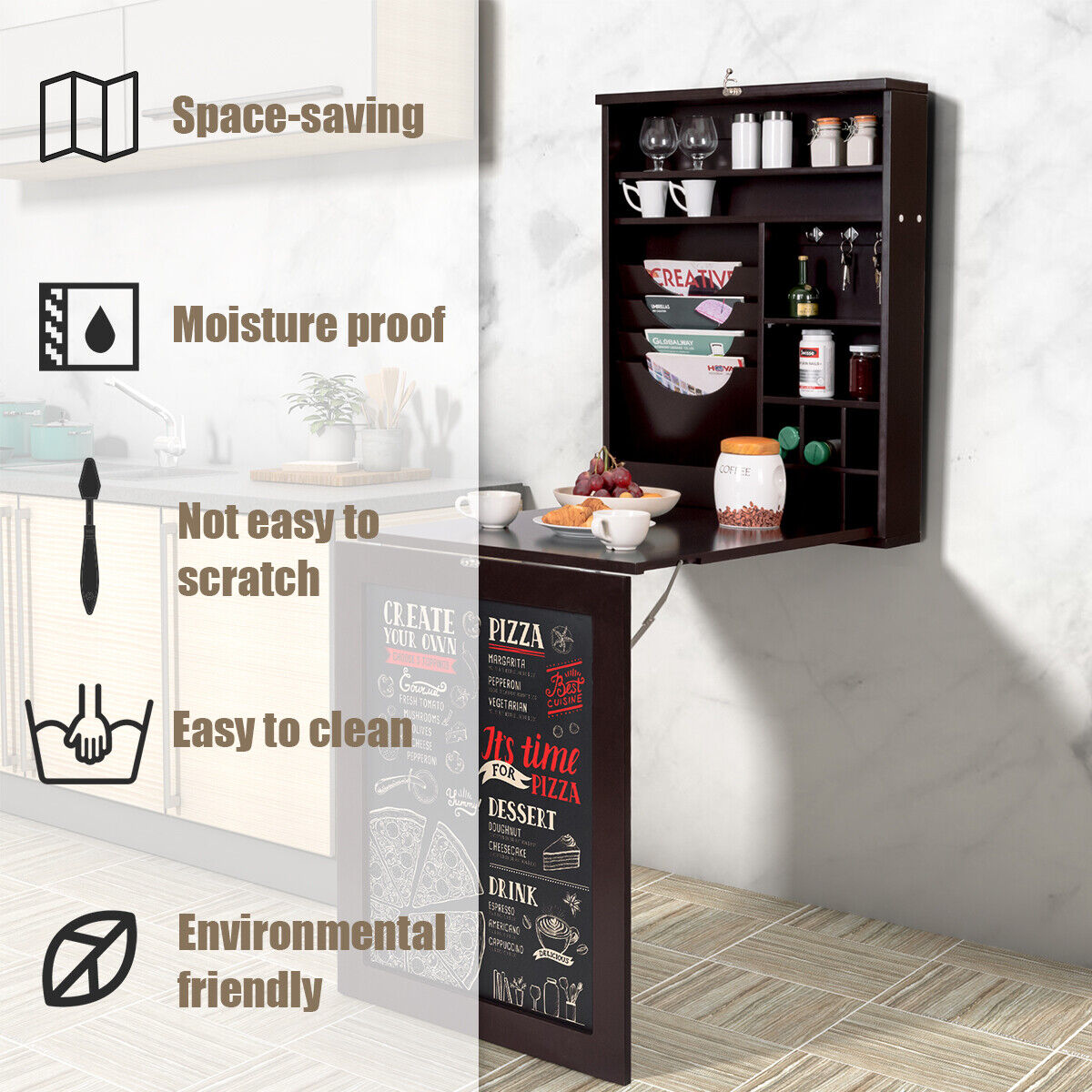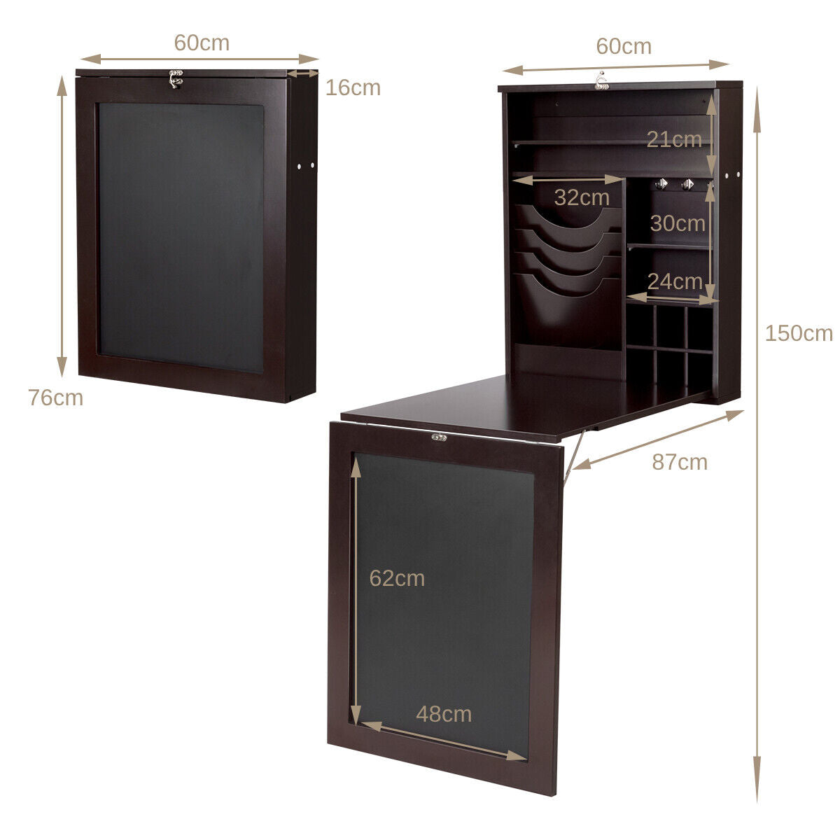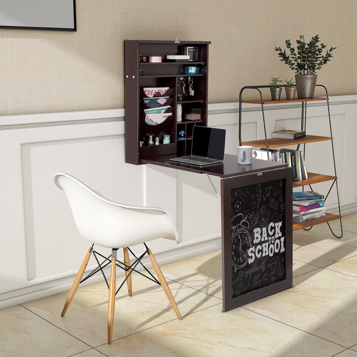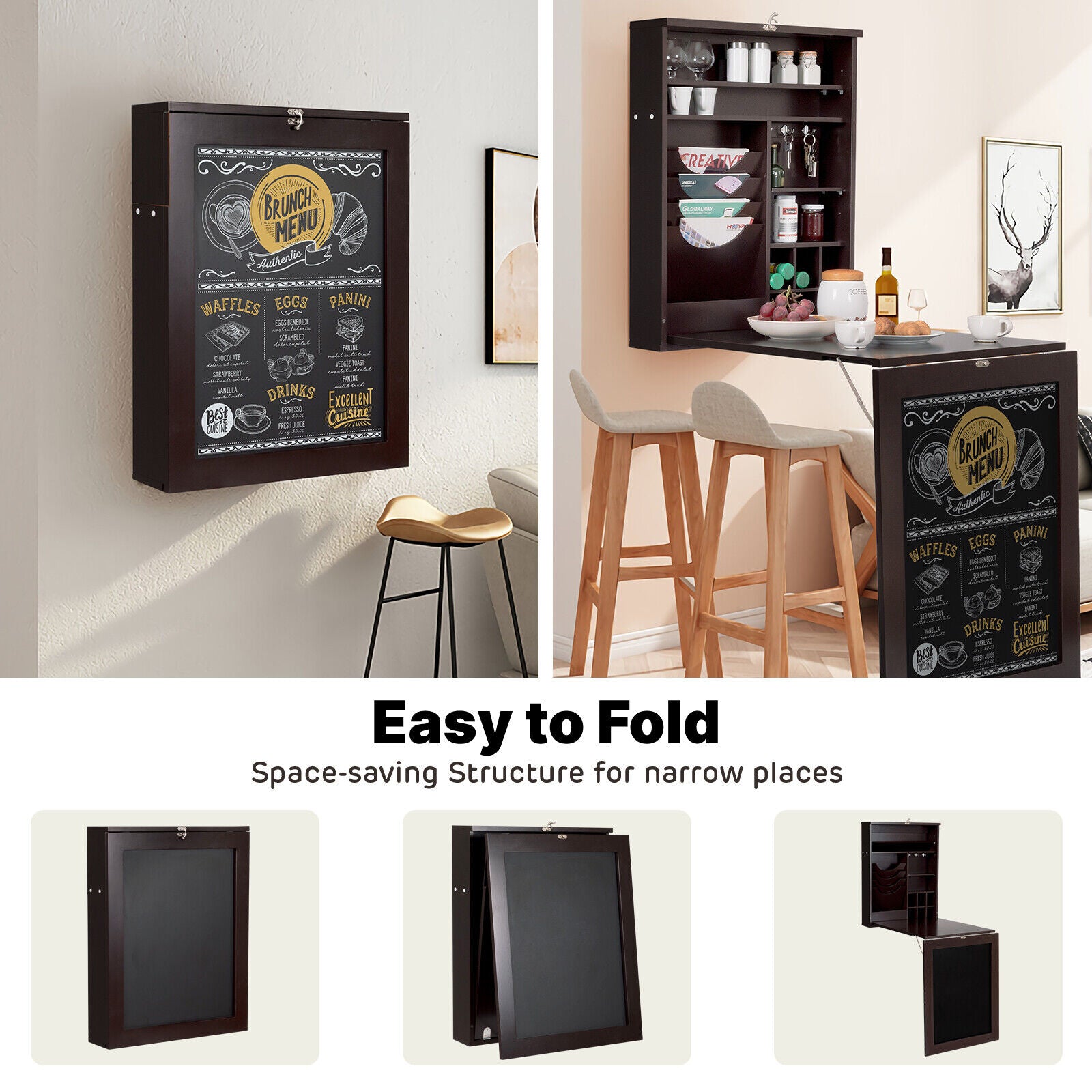 Wall-Mounted Drop-Leaf Table Folding Home Desk Shelf Multi-Function Chalkboard
