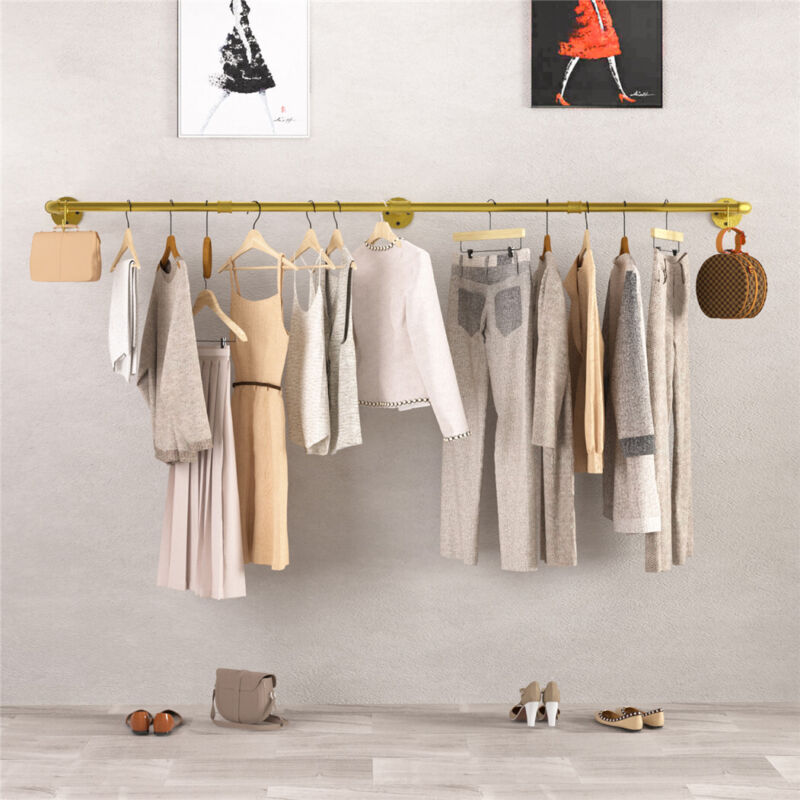Wall Mounted Industrial Pipe Clothes Rack Clothing Rod Garment Rack Laundry Room