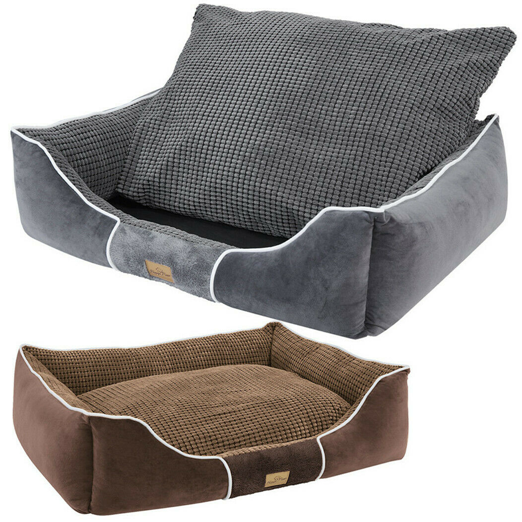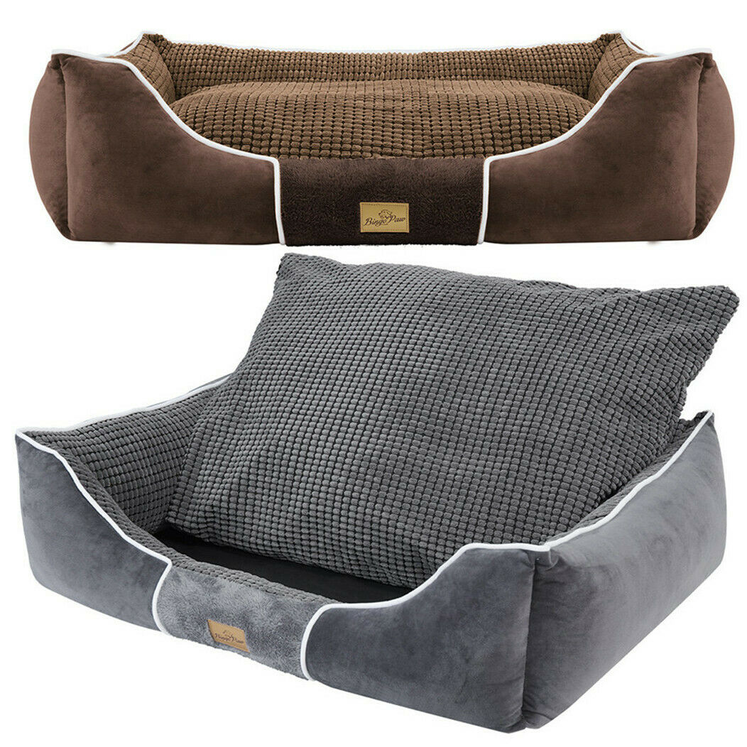 Washable Plush Dog Bed Soft Comfy Cat Pet Basket Non-slip with Removable Cushion