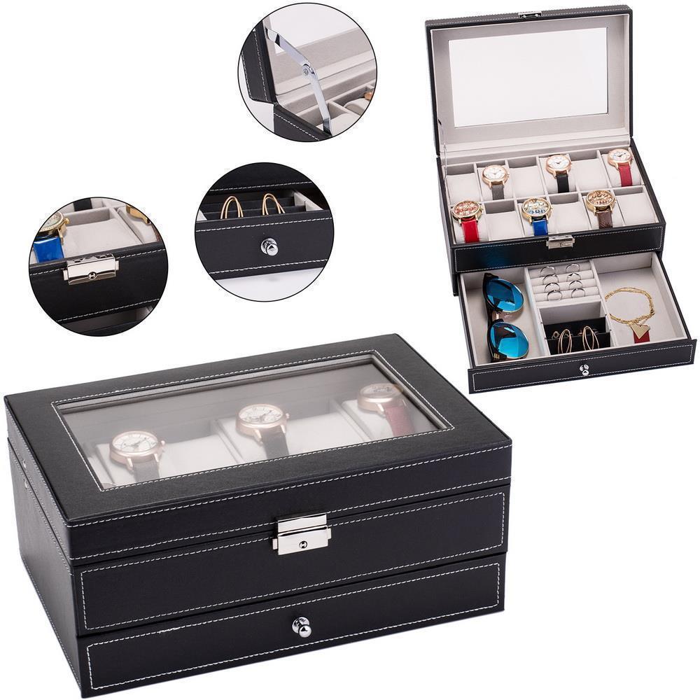 Watch Case Storage Box 12 Grids Jewelry Display Collection Holder Father's Day