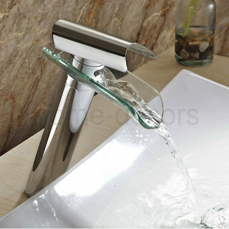 Waterfall Tall Glass Bathroom Basin Sink Mixer Taps Cloakroom Hand Wash Faucet