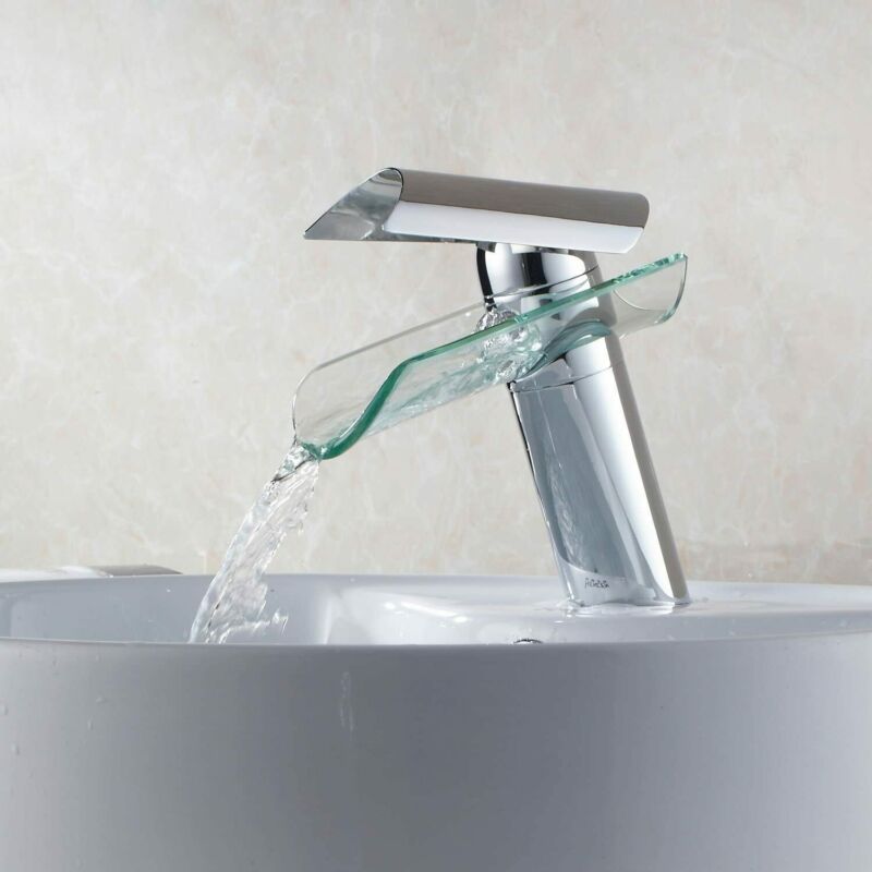 - Features: Tall, with glass waterfall spout, Water Conservation