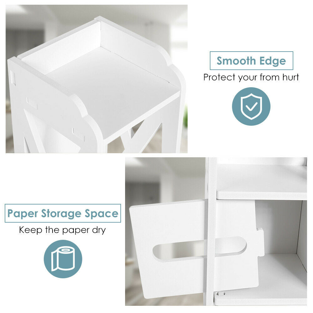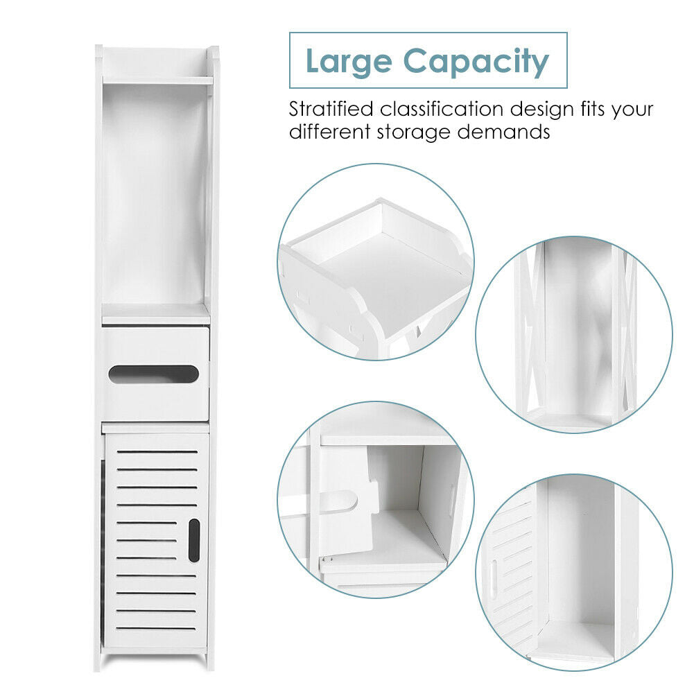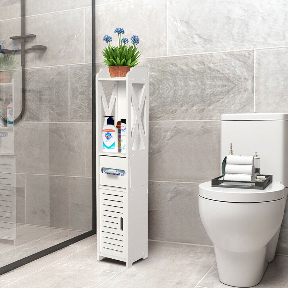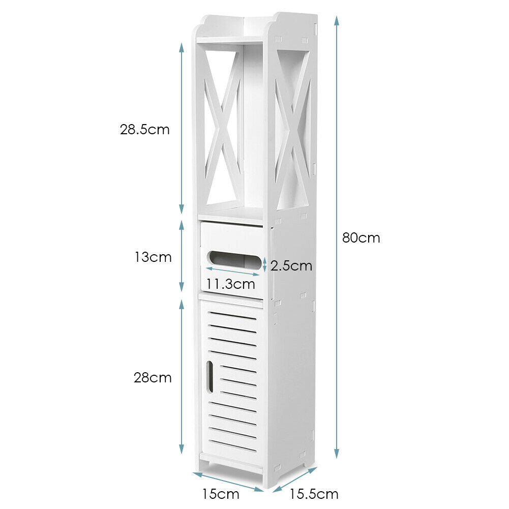 Waterproof Bathroom Tall Cabinet White Wood Storage Unit Shelf Cupboard Standing