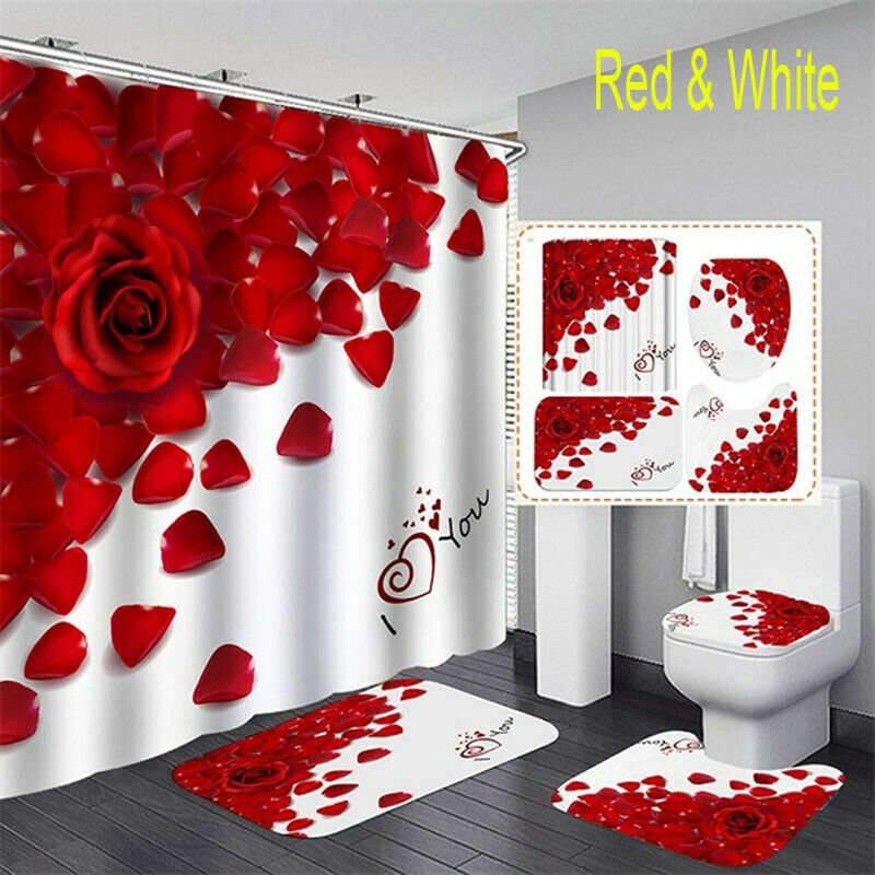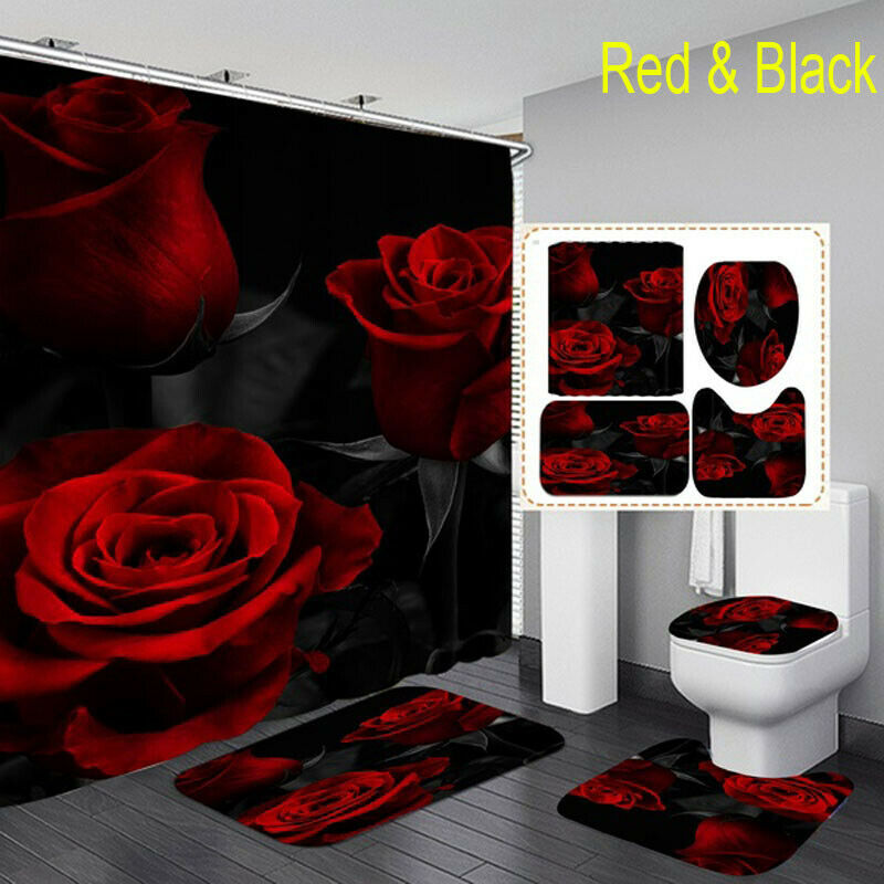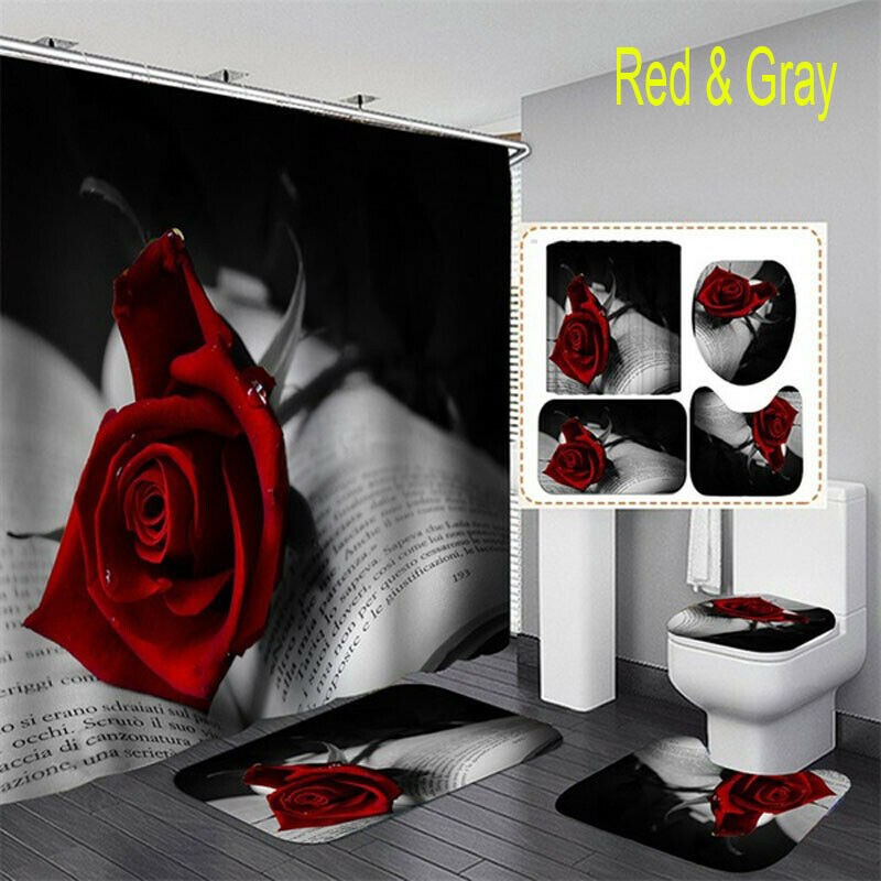 Waterproof Shower Curtain, Bathroom Mats Rugs Carpets Toilet Lid Cover set UK